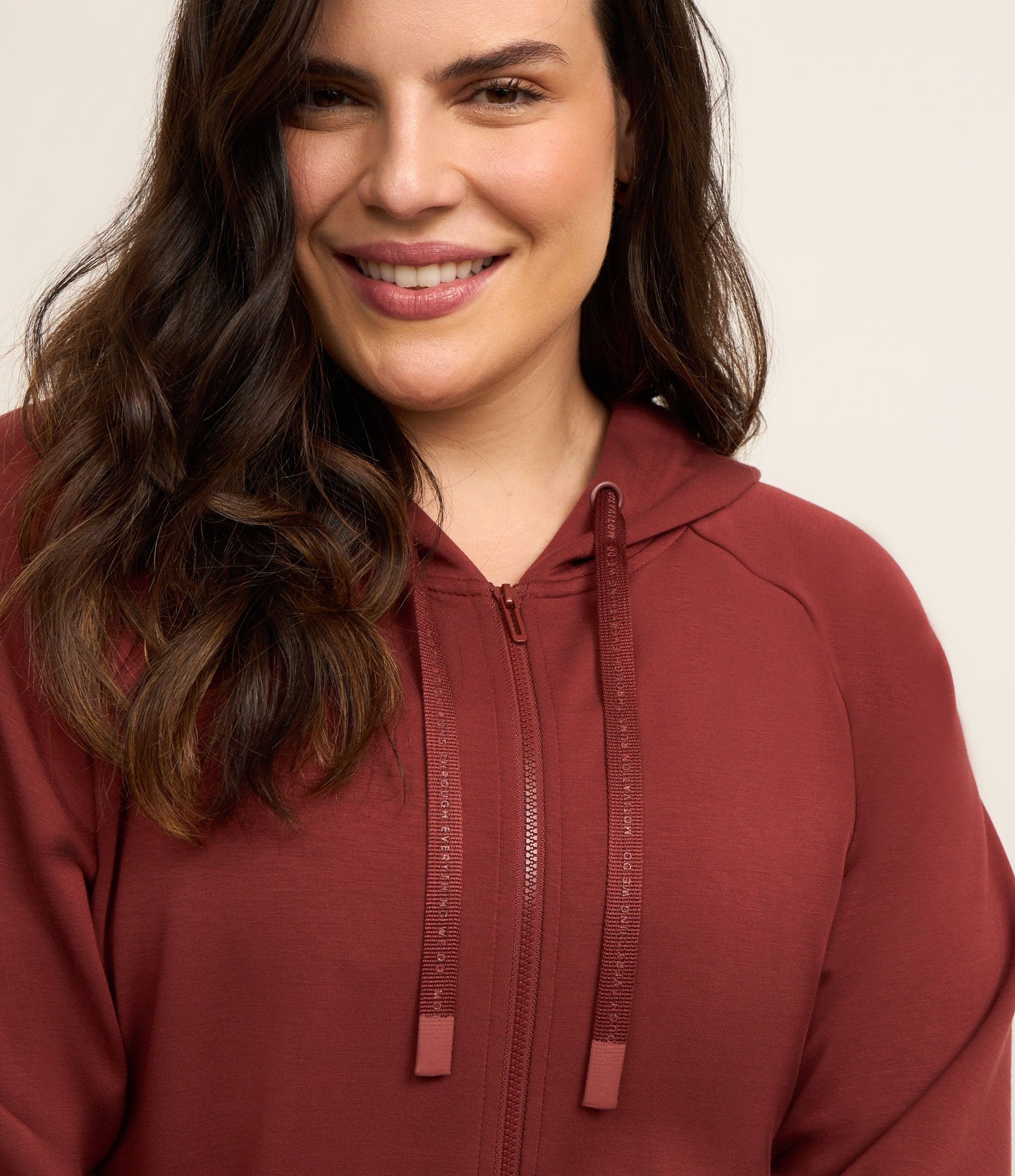 Giacca sportiva marrone con cappuccio e maniche raglan - Curve e taglie forti