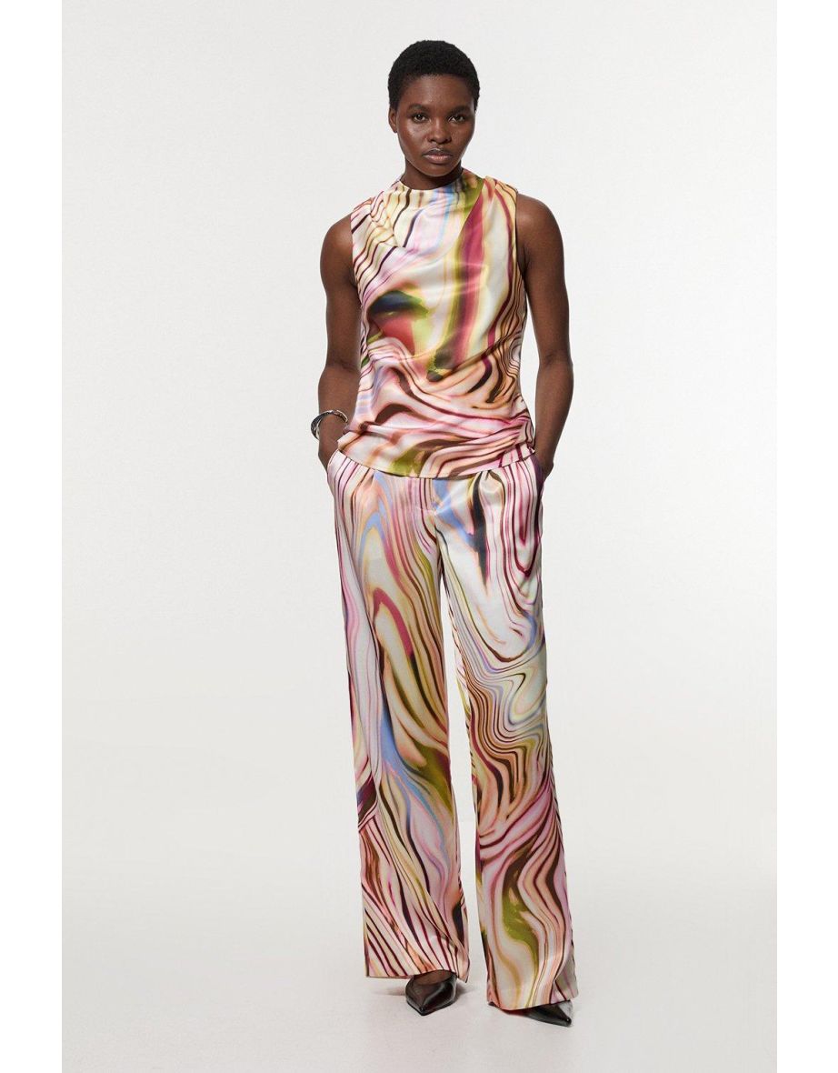 I pantaloni a vita alta Petite Graduated Stripe Viscose Satin di Karen Millen sono l'aggiunta perfetta al tuo guardaroba per i look essenziali e l'eleganza di tutti i giorni.