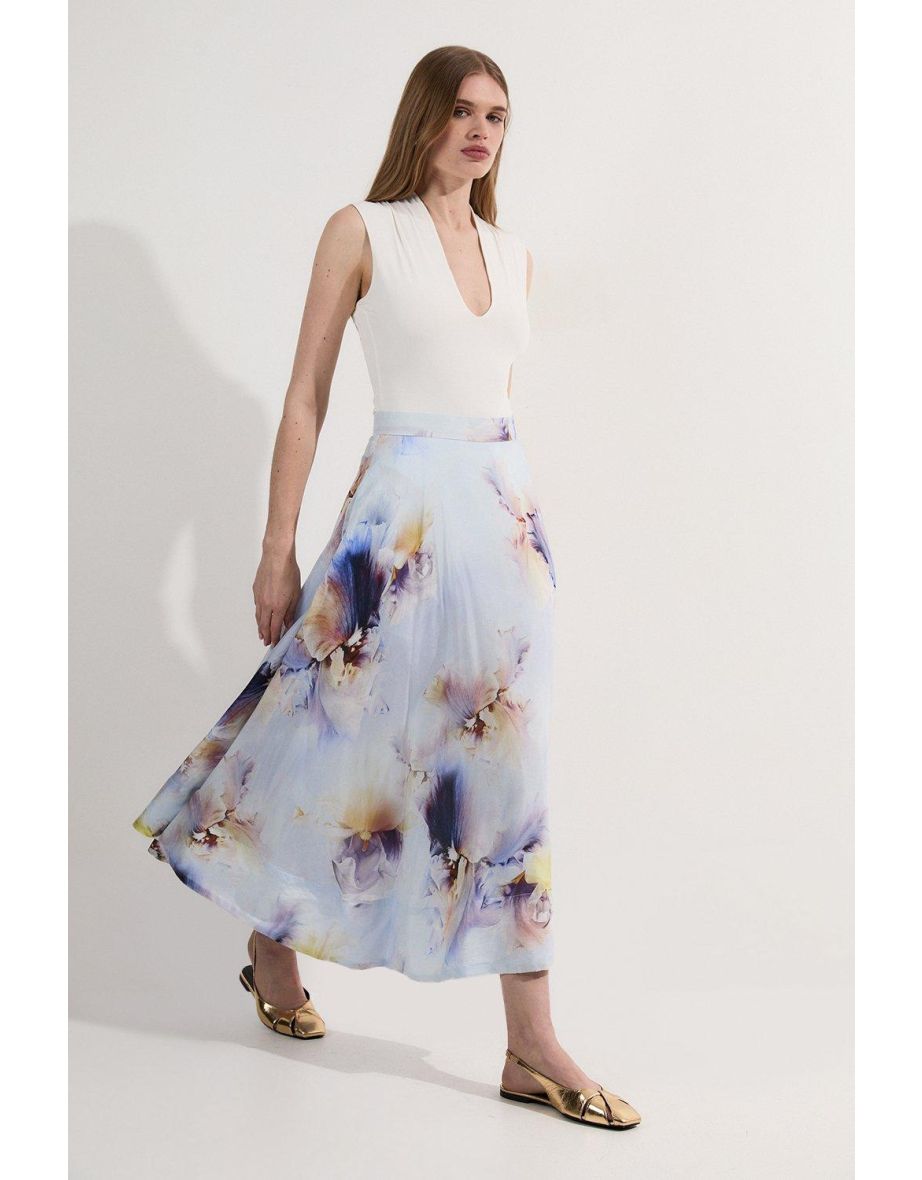Gonna da ballo primaverile in seta floreale e cotone intrecciato
