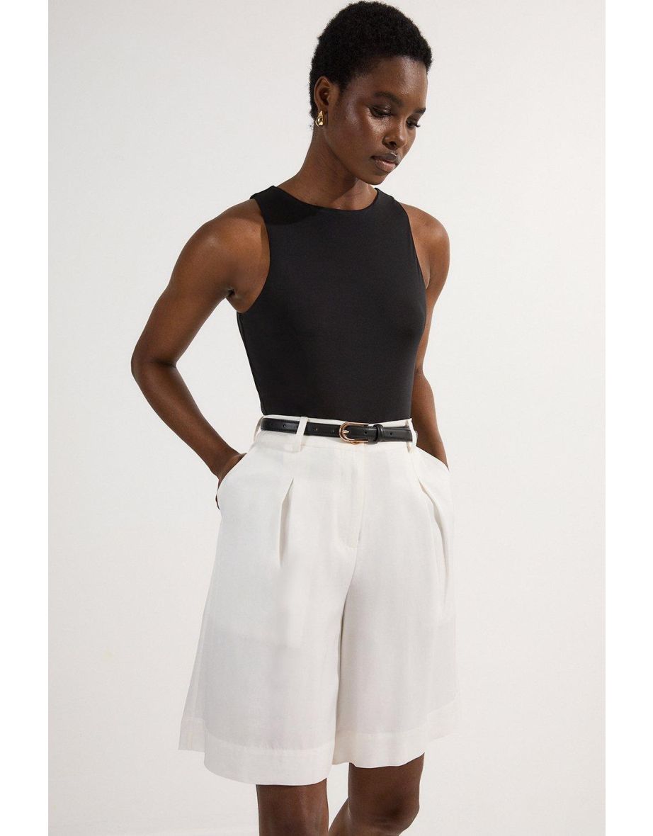 I pantaloncini Tall Premium Viscose Linen Belted Woven City Shorts di Karen Millen sono l'emblema dello stile e della versatilità senza sforzo. Pensati per i look essenziali e per l'abbigliamento di tutti i giorni, questi pantaloncini uniscono il comfort alla raffinatezza, diventando un'aggiunta irrinunciabile al tuo guardaroba.