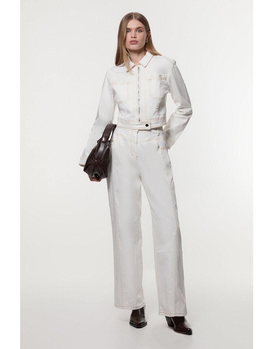 La giacca Indigo Denim Contrast Stitch Detail Zip-Through di Karen Millen è la scelta definitiva per uno stile quotidiano e chic.