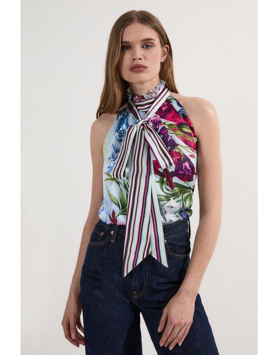 La blusa Petite Floral Printed Halter Neck Woven di Karen Millen è la scelta ideale per uno stile essenziale e quotidiano.