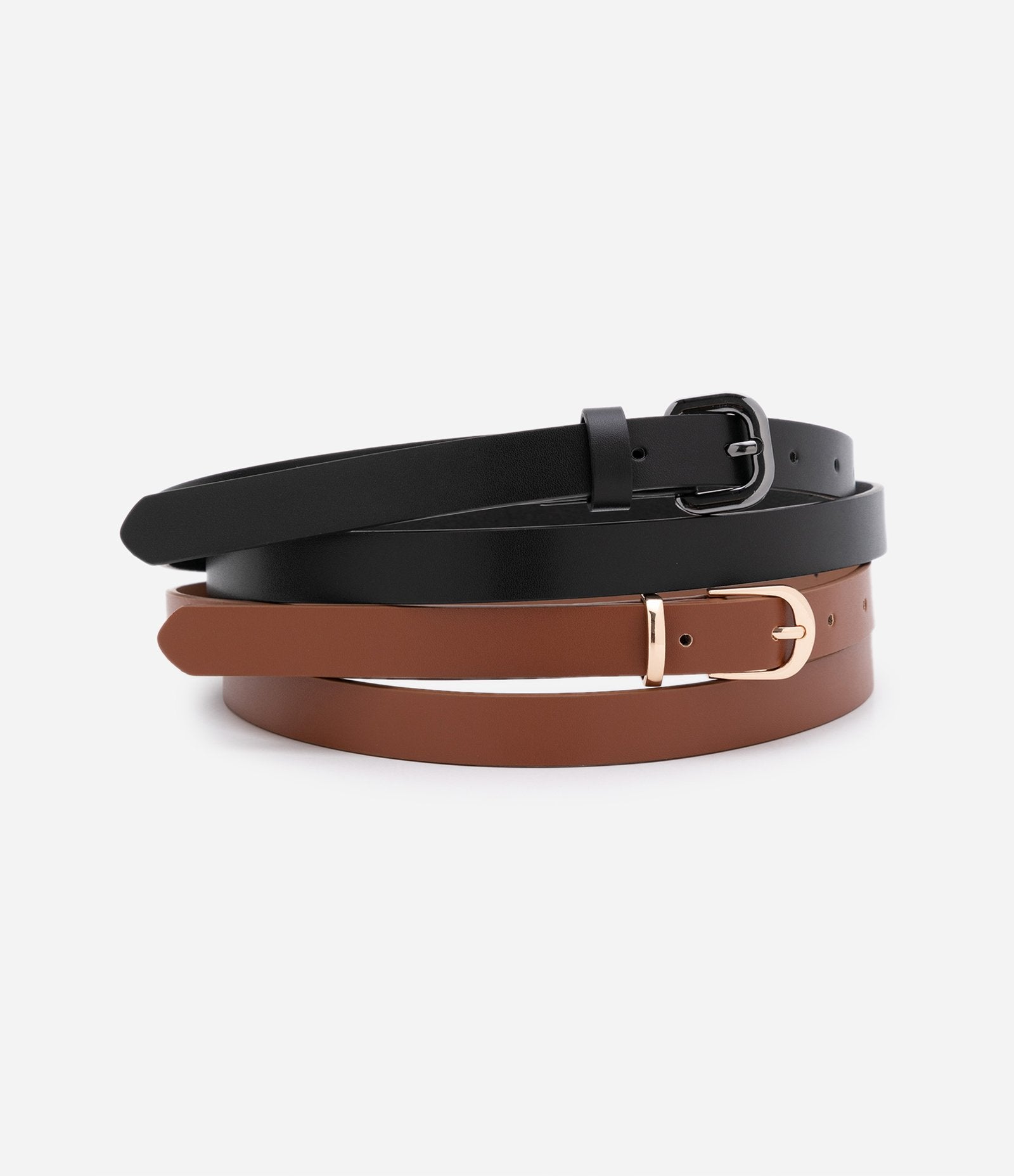 Set di 2 cinture sottili in materiale sintetico - Curve e taglie forti Nero/Brown