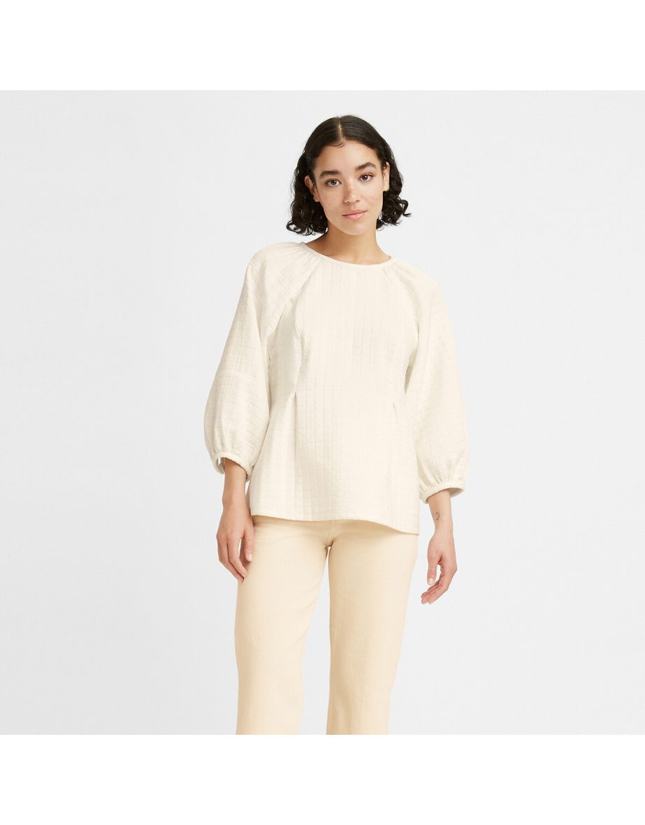Camicetta in misto cotone con maniche a 3/4 e scollatura a girocollo