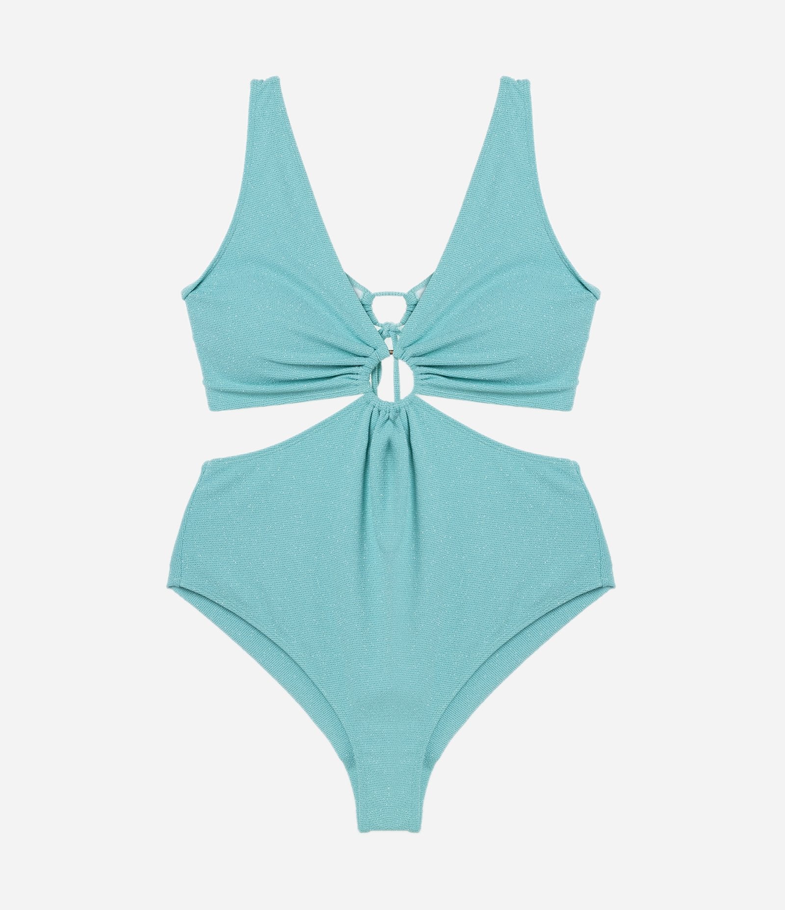 Costume da bagno in poliammide verde turchese con filo metallico e ferretto, Curve e taglie forti