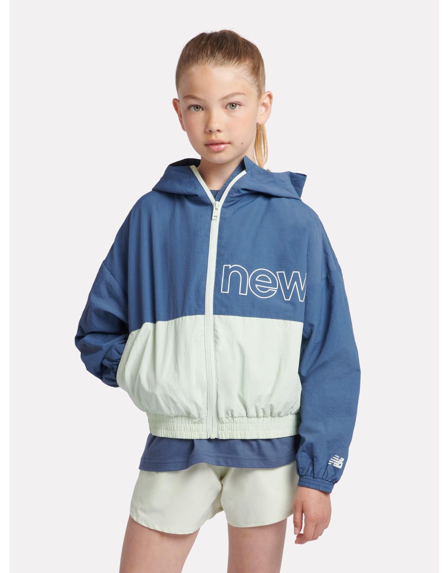 La giacca a vento da bambina Athletics Mesh-Lined in blu di New Balance è la scelta ideale per un look casual e senza sforzo e per l'abbigliamento di tutti i giorni.