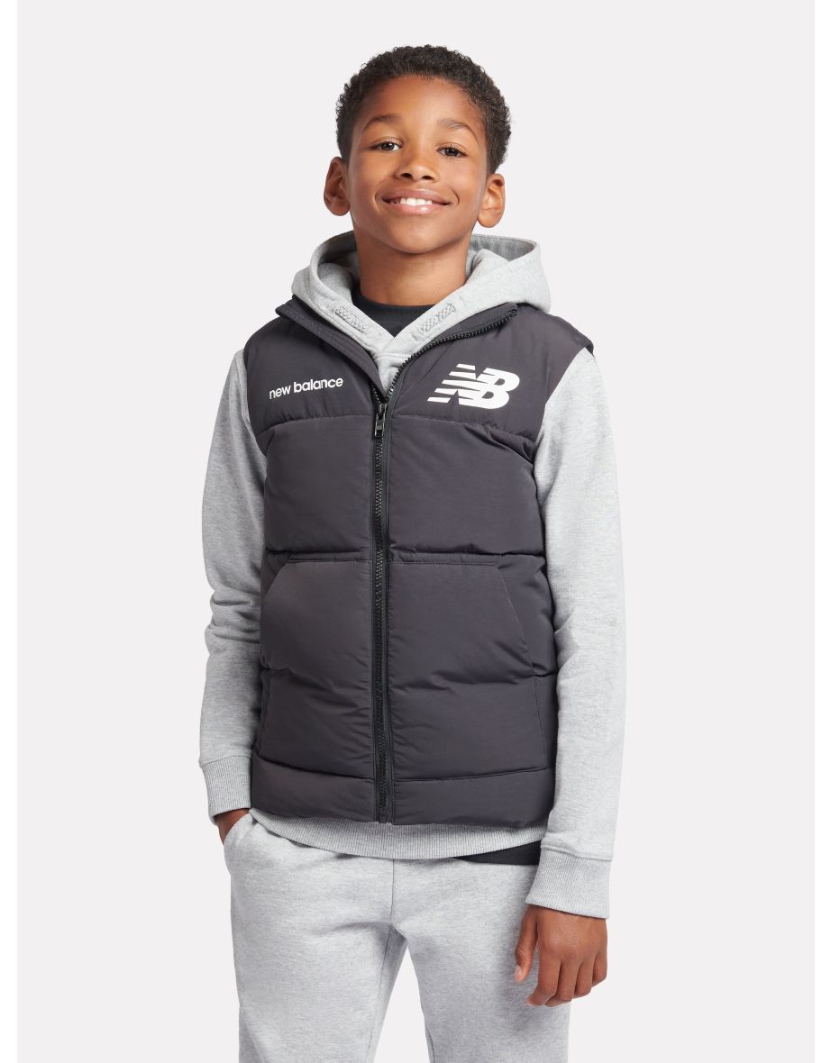 Il gilet trapuntato con logo da ragazzo in nero di New Balance è la scelta ideale per uno stile casual senza sforzo e da indossare tutti i giorni.