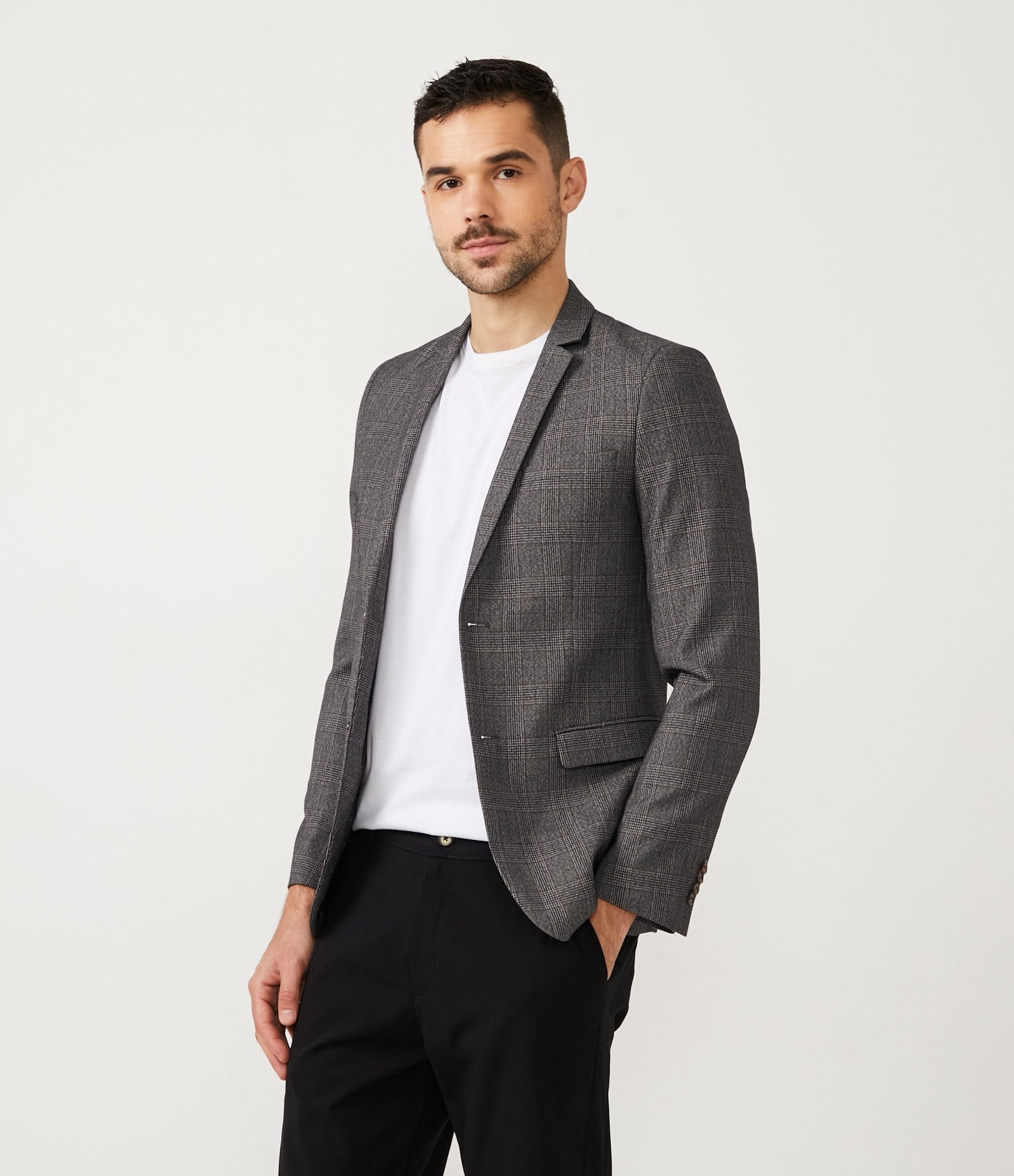 Blazer slim fit a fantasia in tessuto poliviscosa grigio