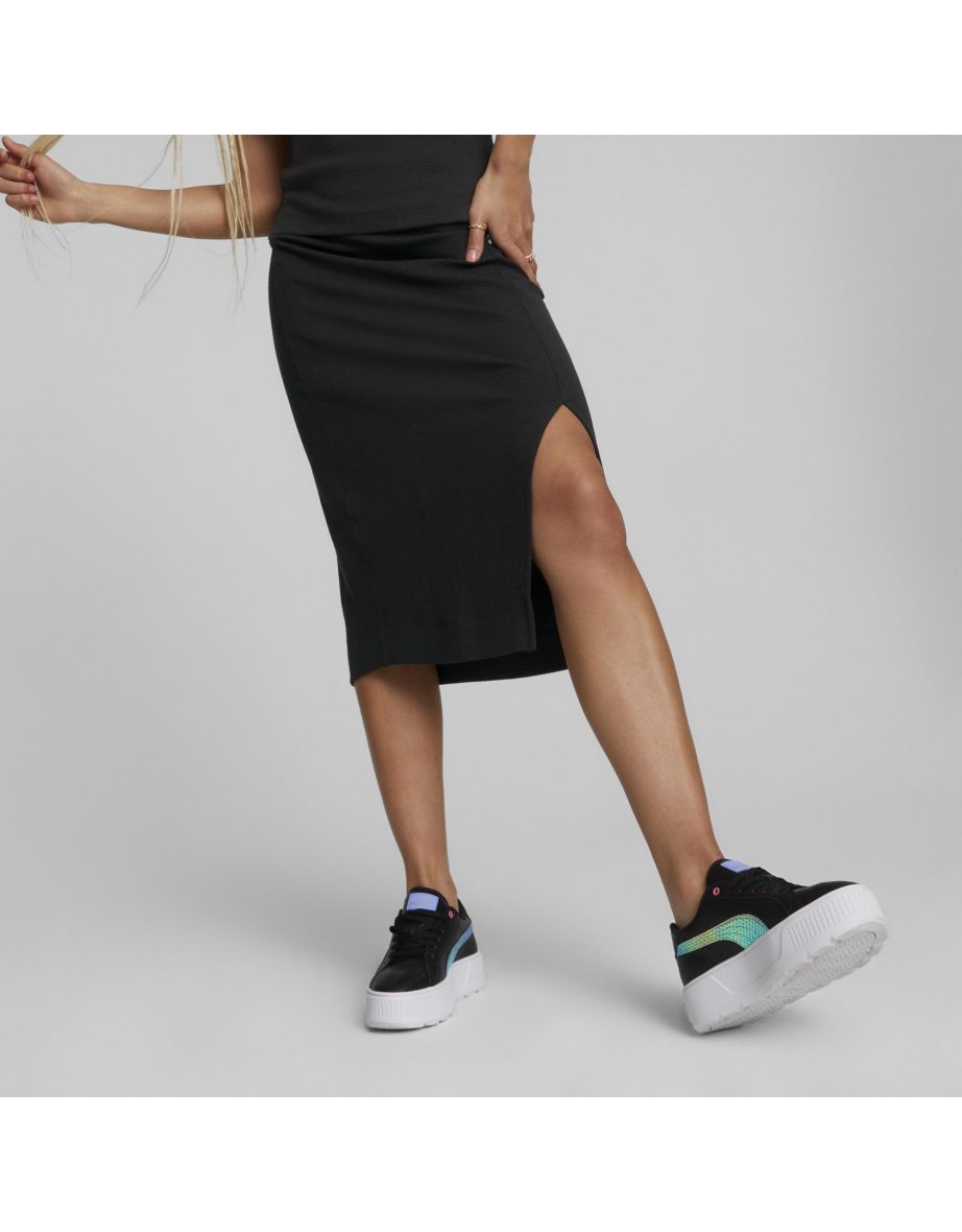 La gonna midi a colonna nera con spacco di Puma è la scelta ideale per uno stile casual e disinvolto da indossare tutti i giorni.