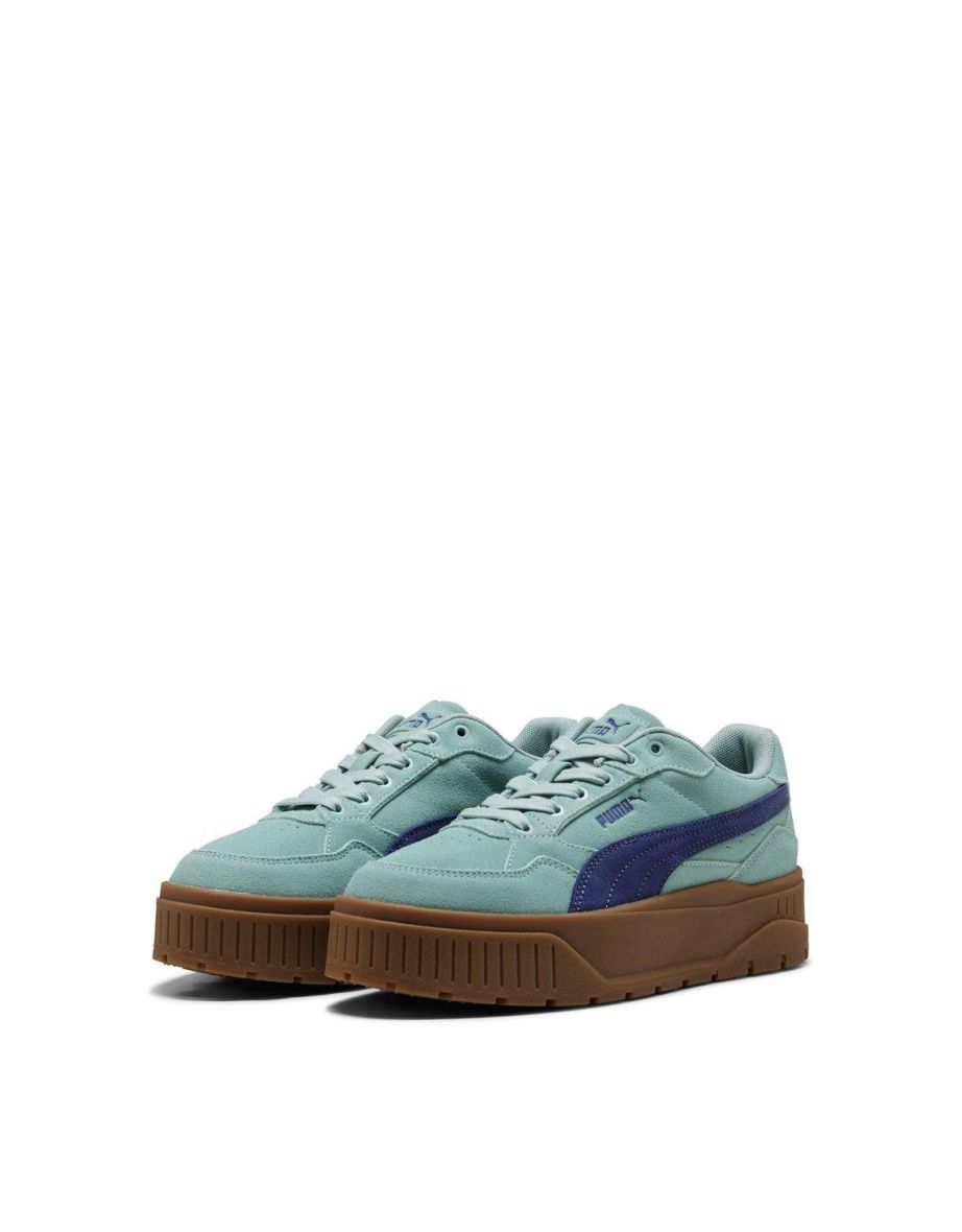 Le Karmen Suede II Idol SD in Modern Mint e Crystal Blue di Puma sono la scelta ideale per gli outfit casual e l'abbigliamento quotidiano.