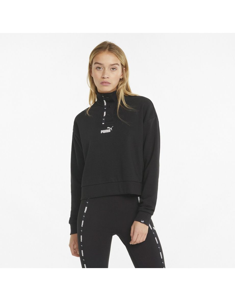 La felpa con stampa logo Puma, realizzata in misto cotone di prima qualità, presenta un elegante design a collo alto. È la scelta ideale per outfit casual e chic senza sforzo e per il comfort di tutti i giorni.