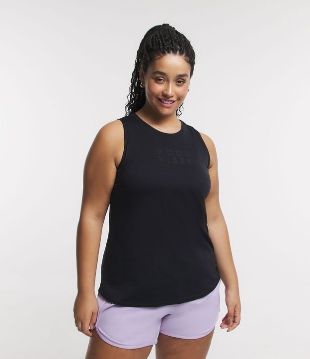 Canotta sportiva in poliammide con stampa "Good Vibes", Curve e taglie forti, nera