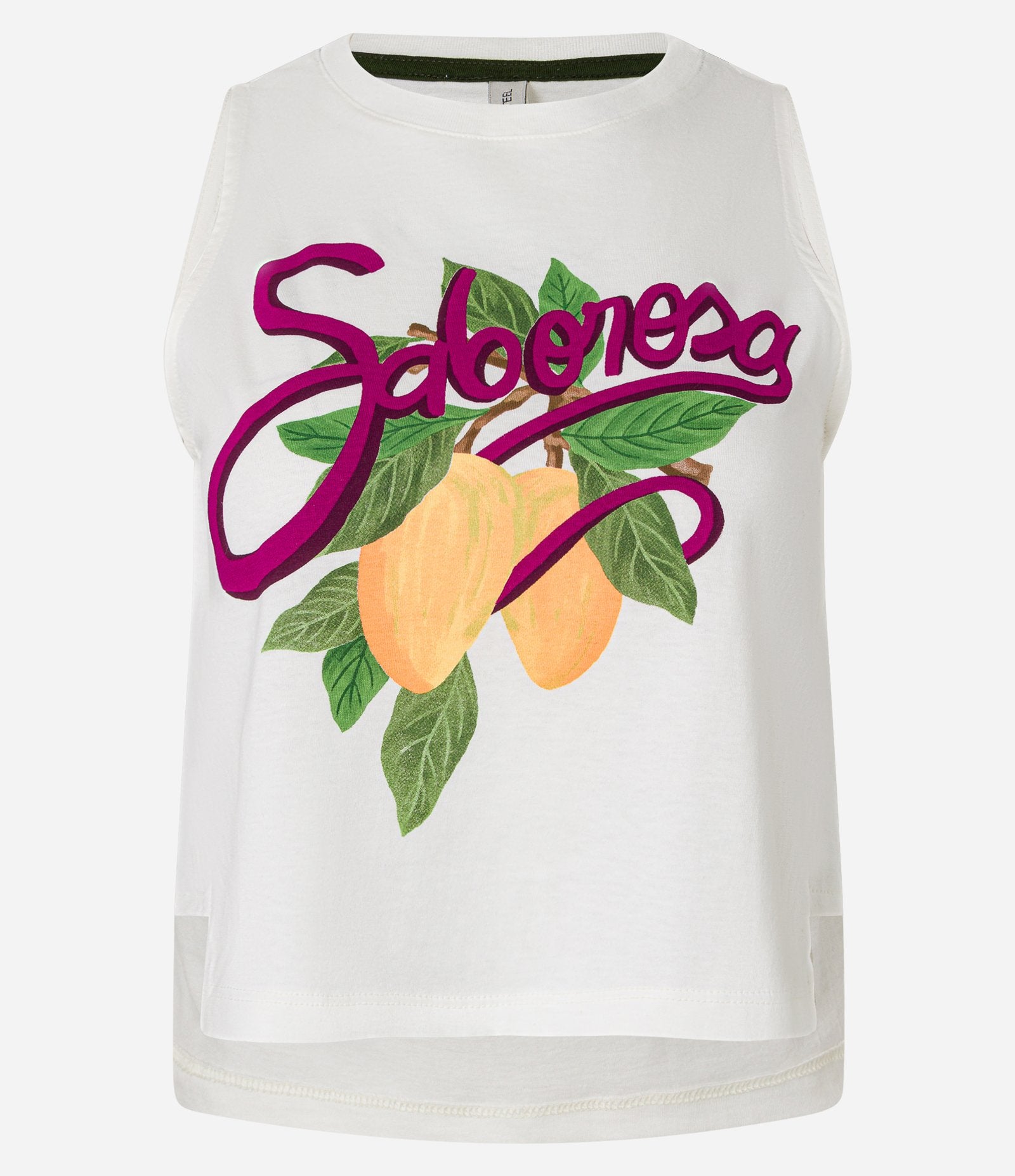 Maglietta senza maniche in cotone bianco per bambini con stampa Tasty