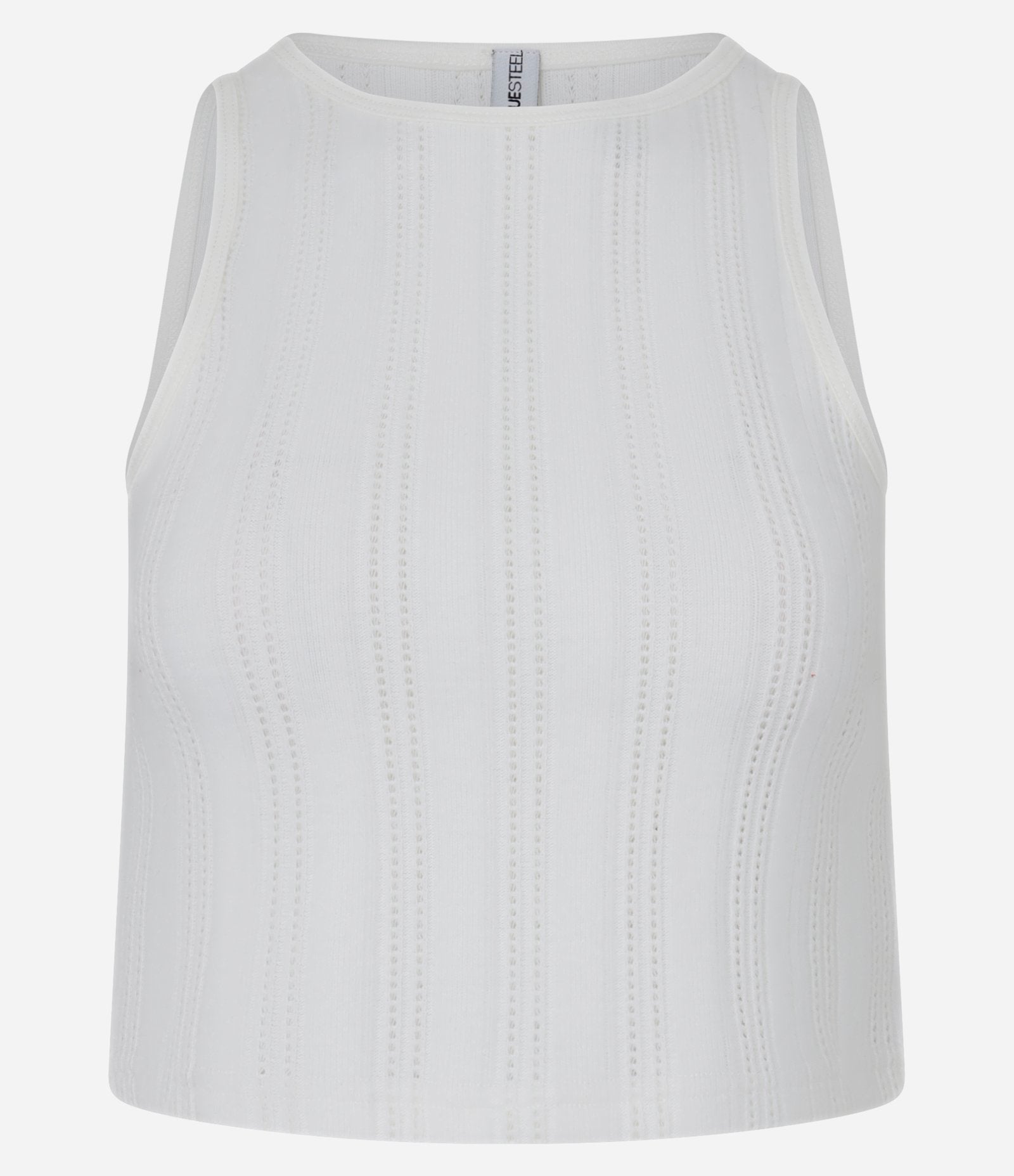 Top cropped a coste e in pile con bordi bianchi a contrasto