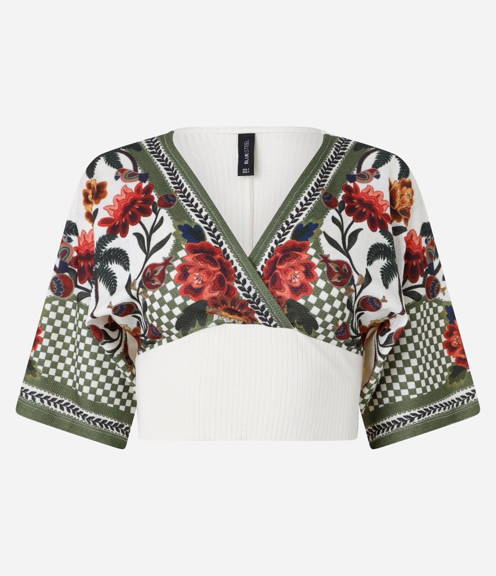 Camicetta cropped testurizzata con stampa floreale e plaid Off-White