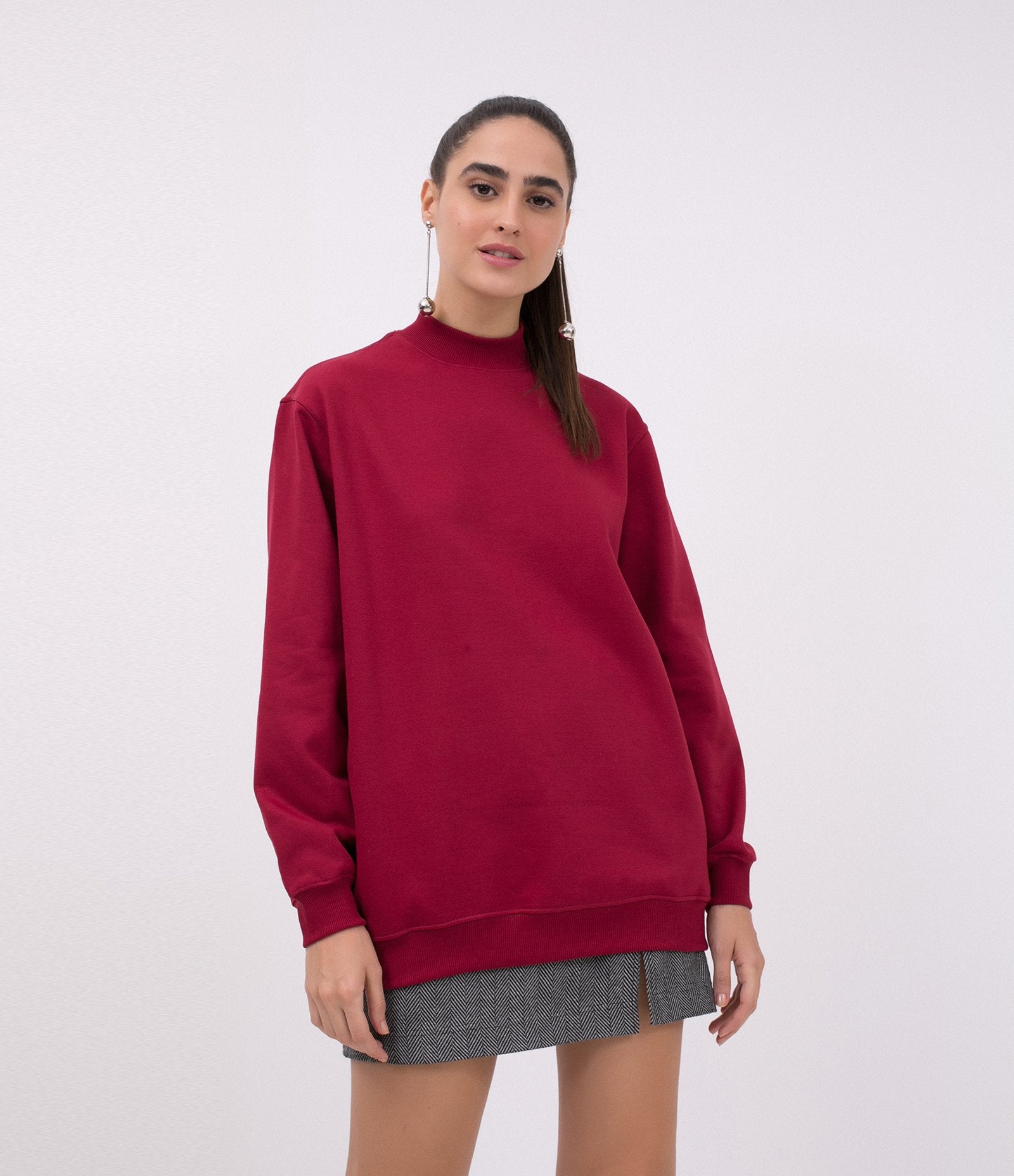 Felpa lunga a tinta unita in borgogna