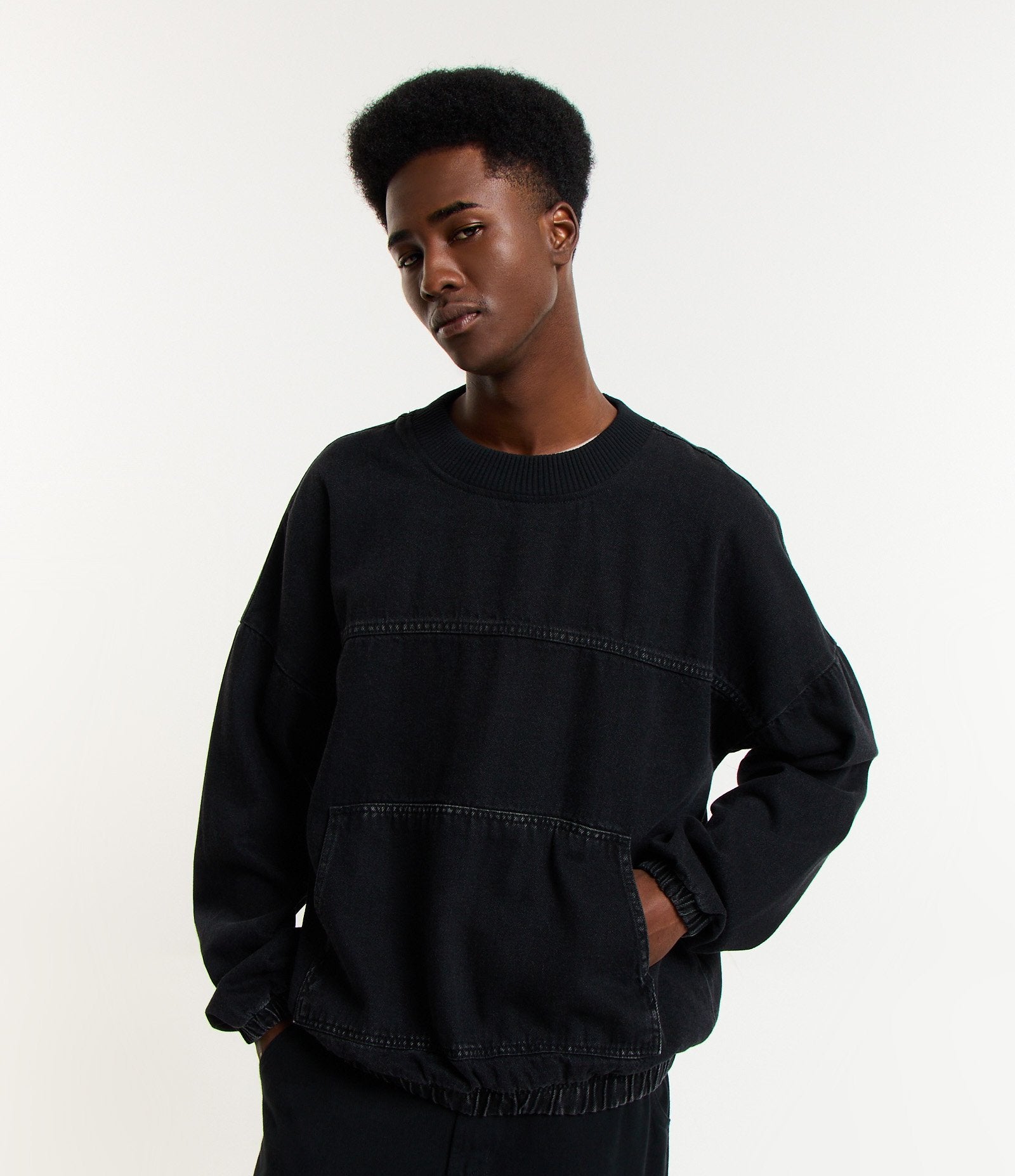 Felpa Denim a palloncino con tasca a canguro nera e design ritagliato