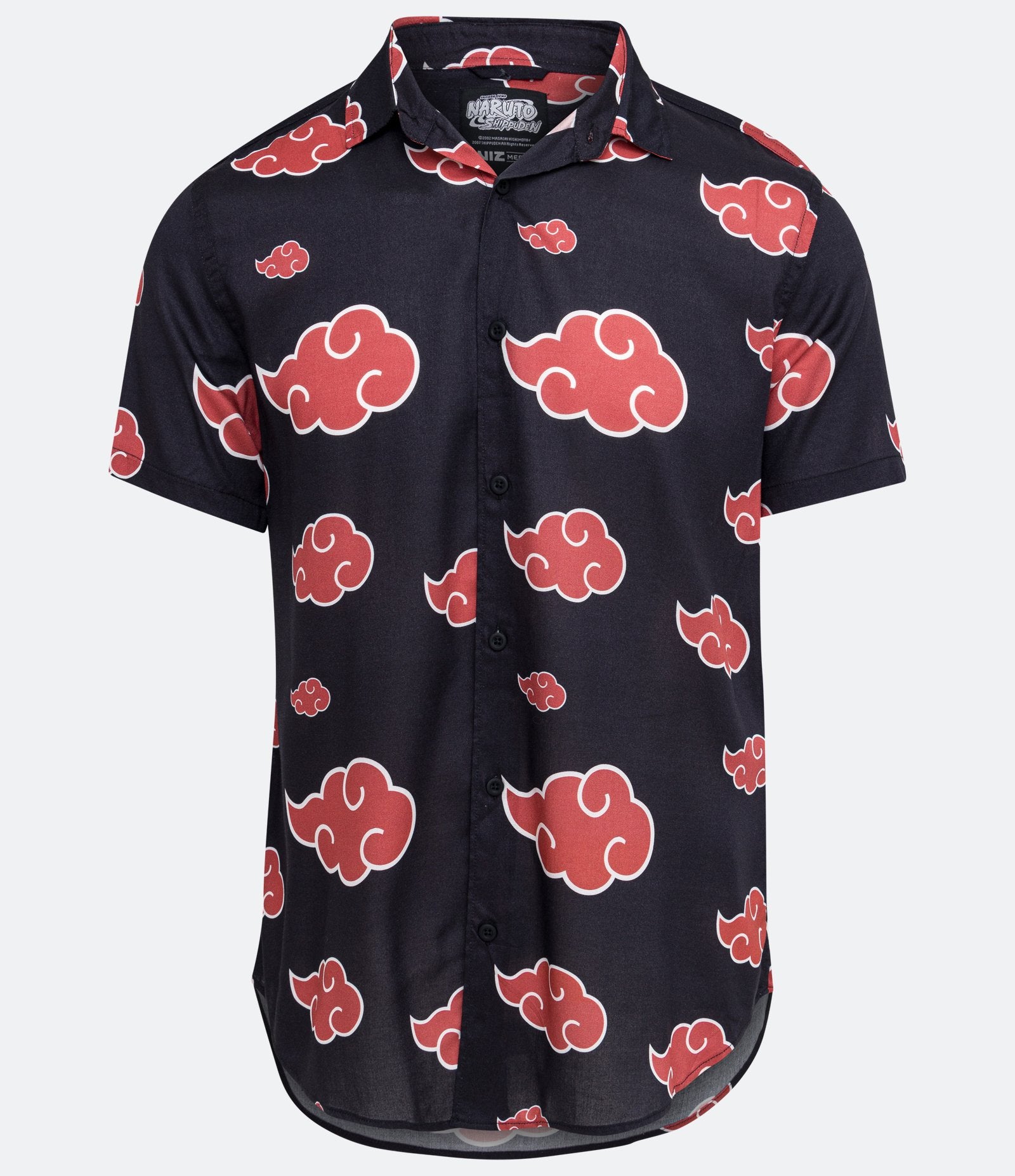 Camicia in viscosa a maniche corte con stampa Akatsuki nera