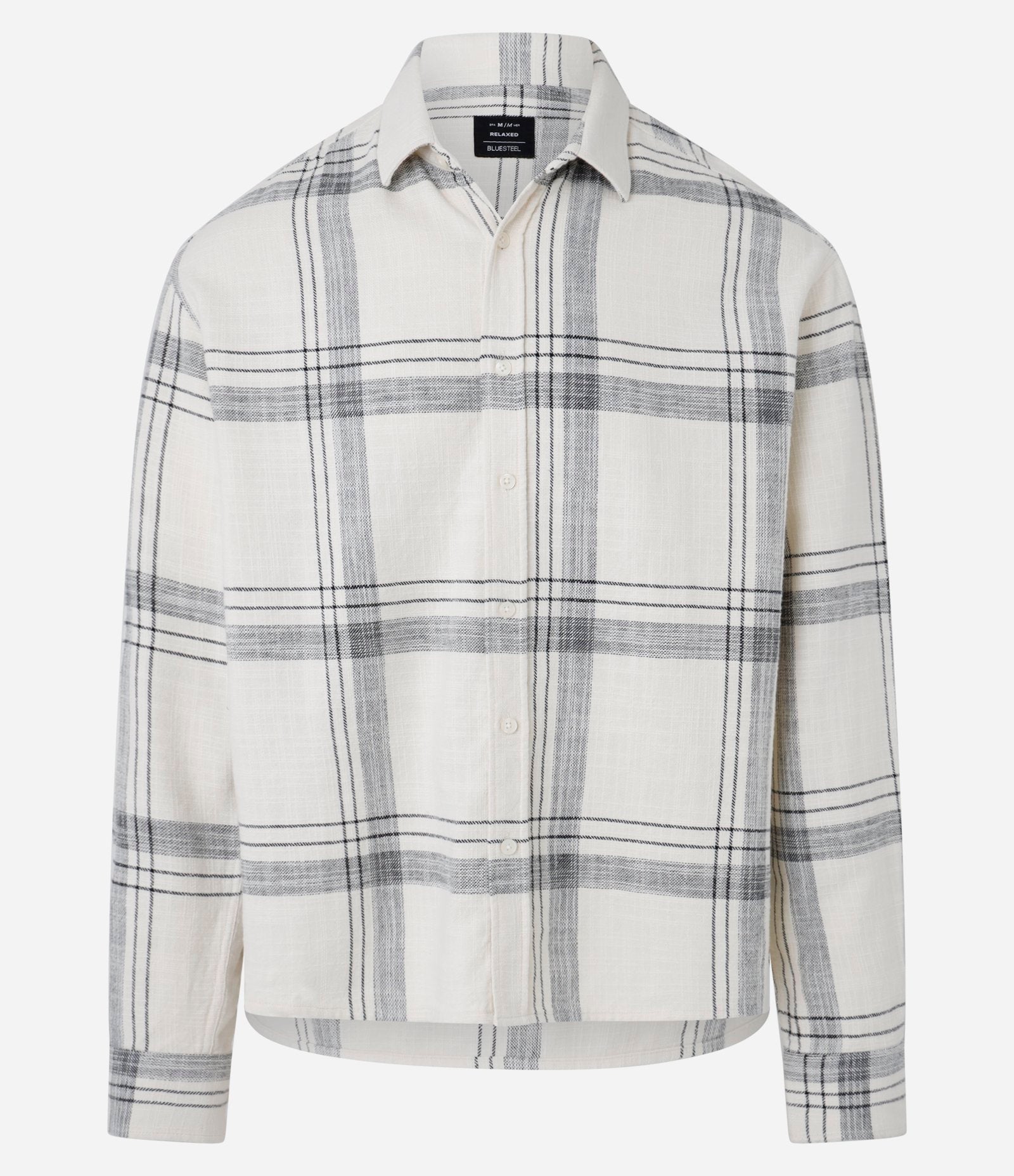 Camicia di flanella dal taglio rilassato con stampa a quadri in bianco e nero