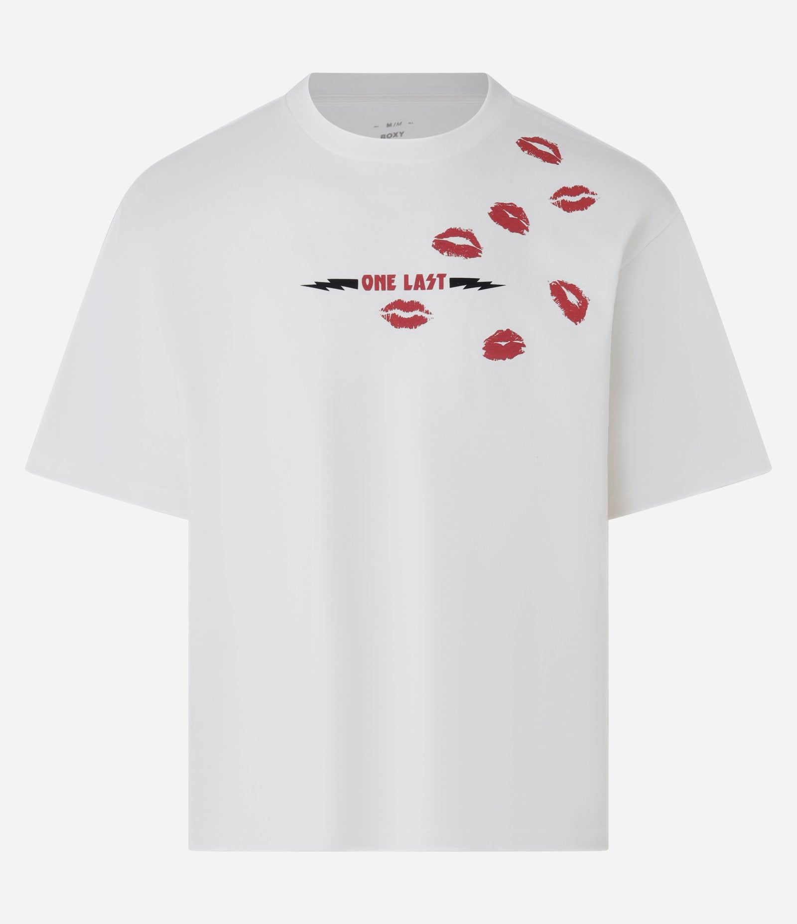 Maglietta boxy in tessuto knit con stampa Kiss bianca
