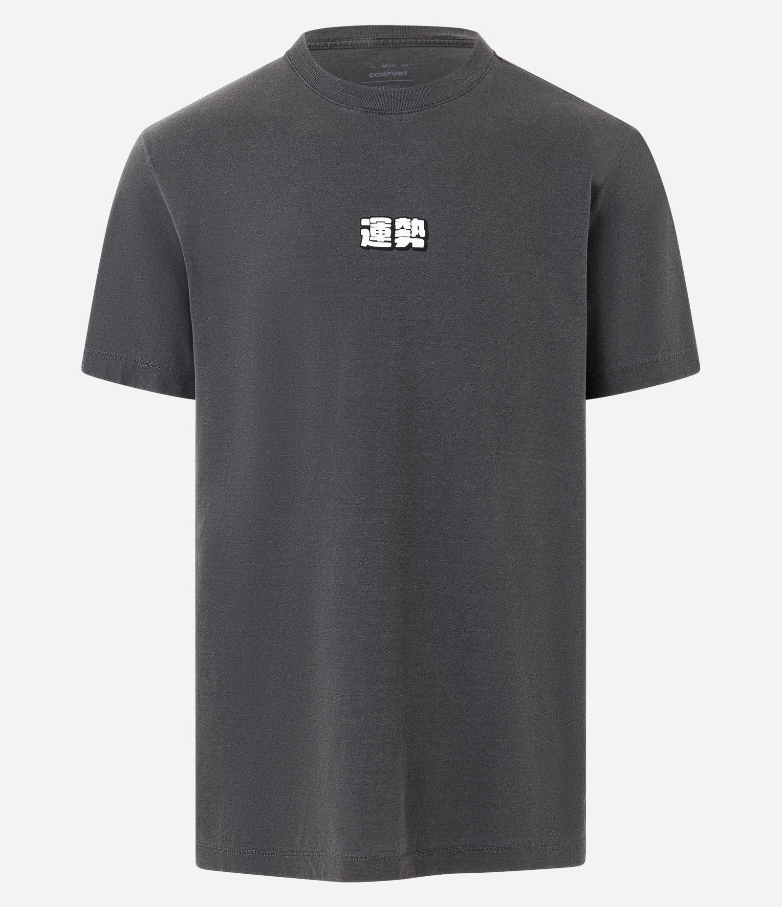 Maglietta Comfort in cotone grigio con stampa di scritte