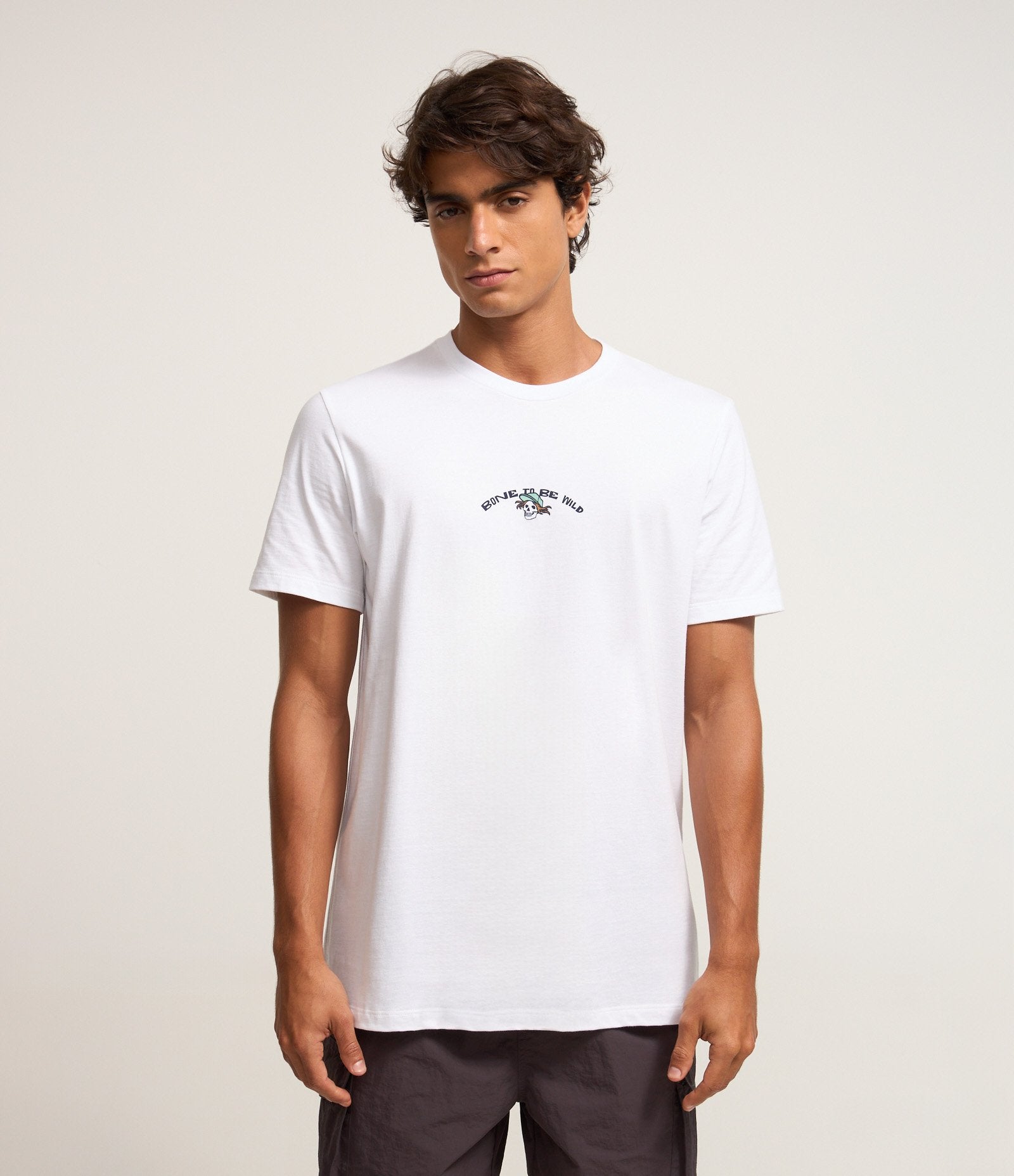 Maglietta in cotone comfort con stampa scheletro di surfista bianco