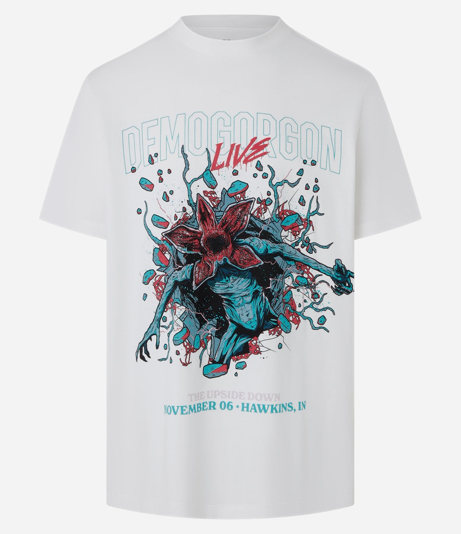 Maglietta bianca in cotone Comfort con stampa di Demogorgon Stranger Things