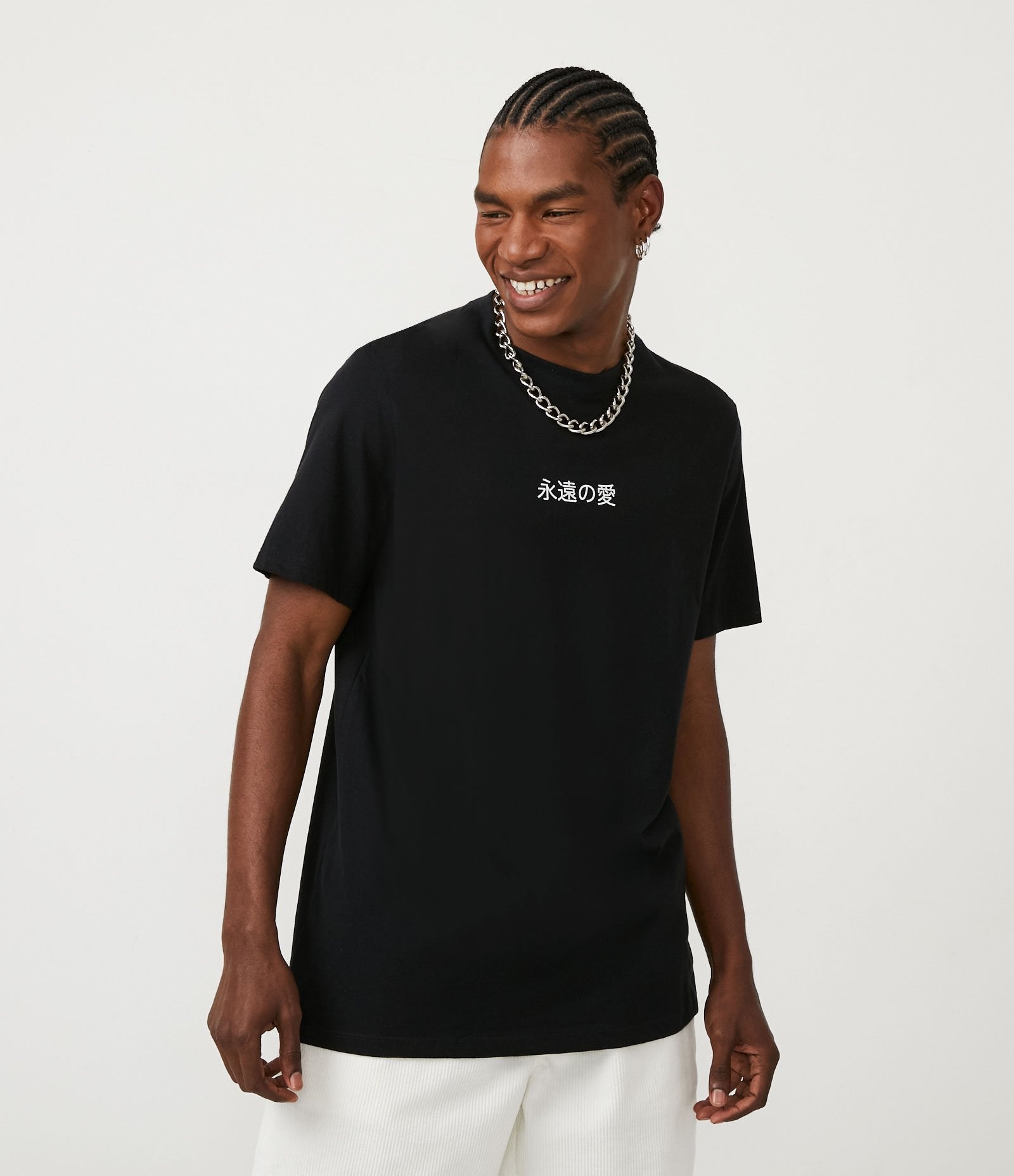 T-shirt in tessuto a mezza maglia con stampa di ideogrammi in nero