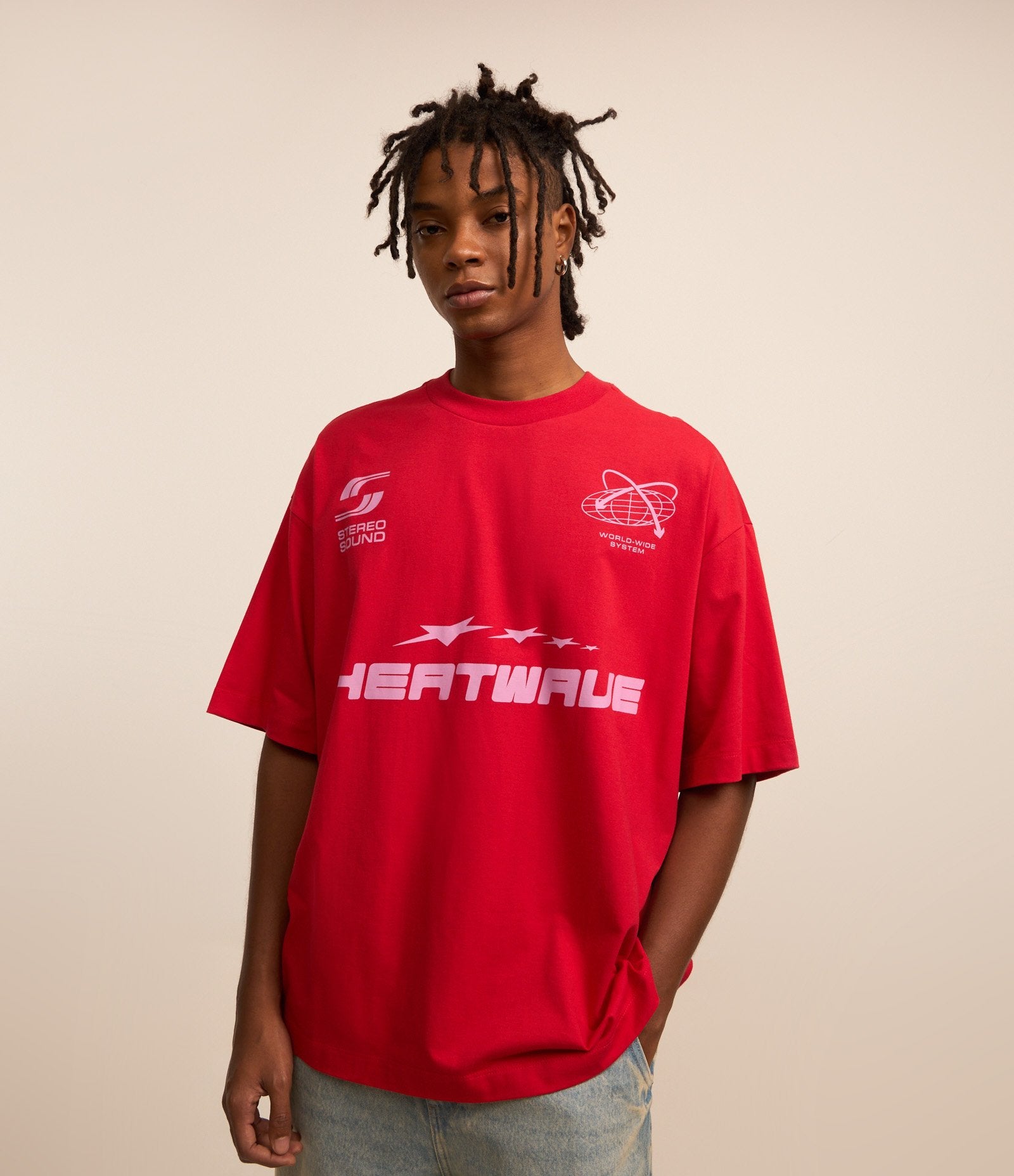 Maglietta sportiva Overboxy in cotone rosso con stampa heatwave
