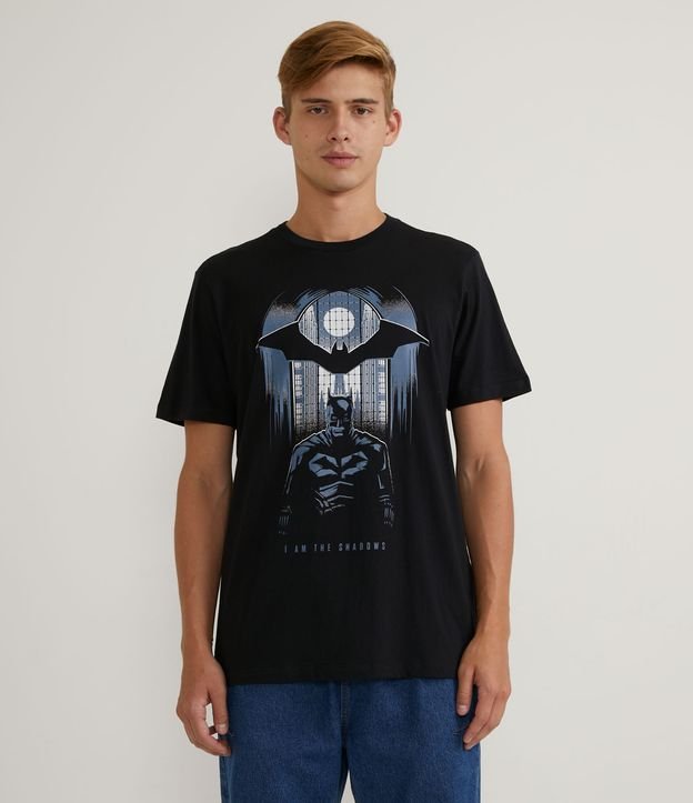 Maglietta a maniche corte con stampa di Batman e scritte in nero