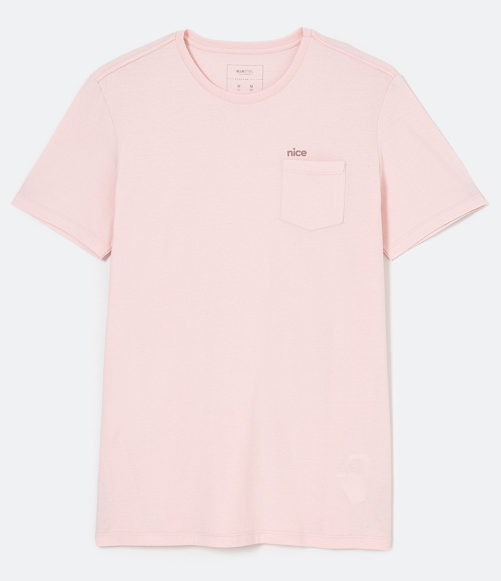 Maglietta a maniche corte con stampa lettering e tasca rosa