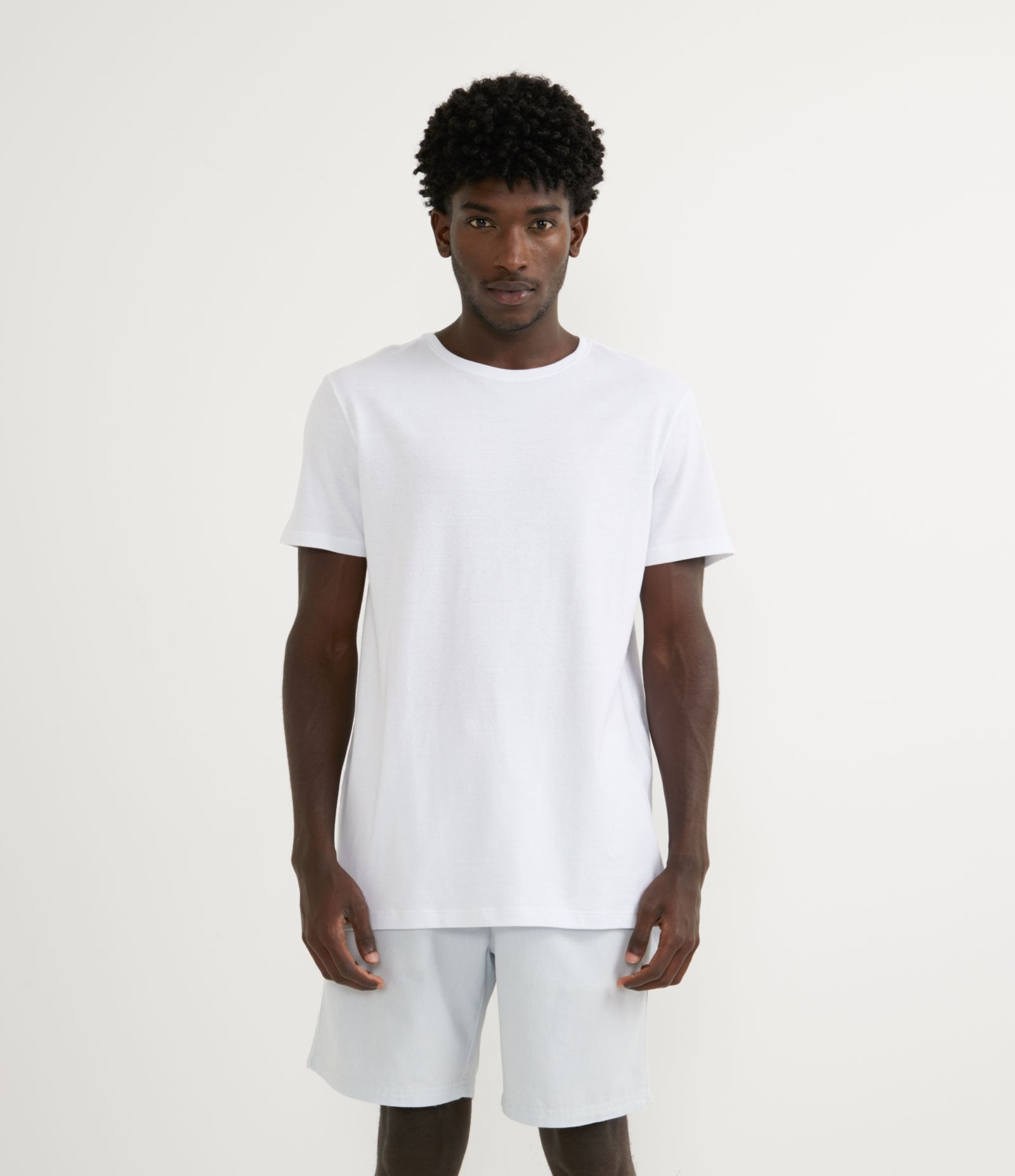Maglietta a maniche corte Long Fit Crepon bianca con etichetta sull'orlo
