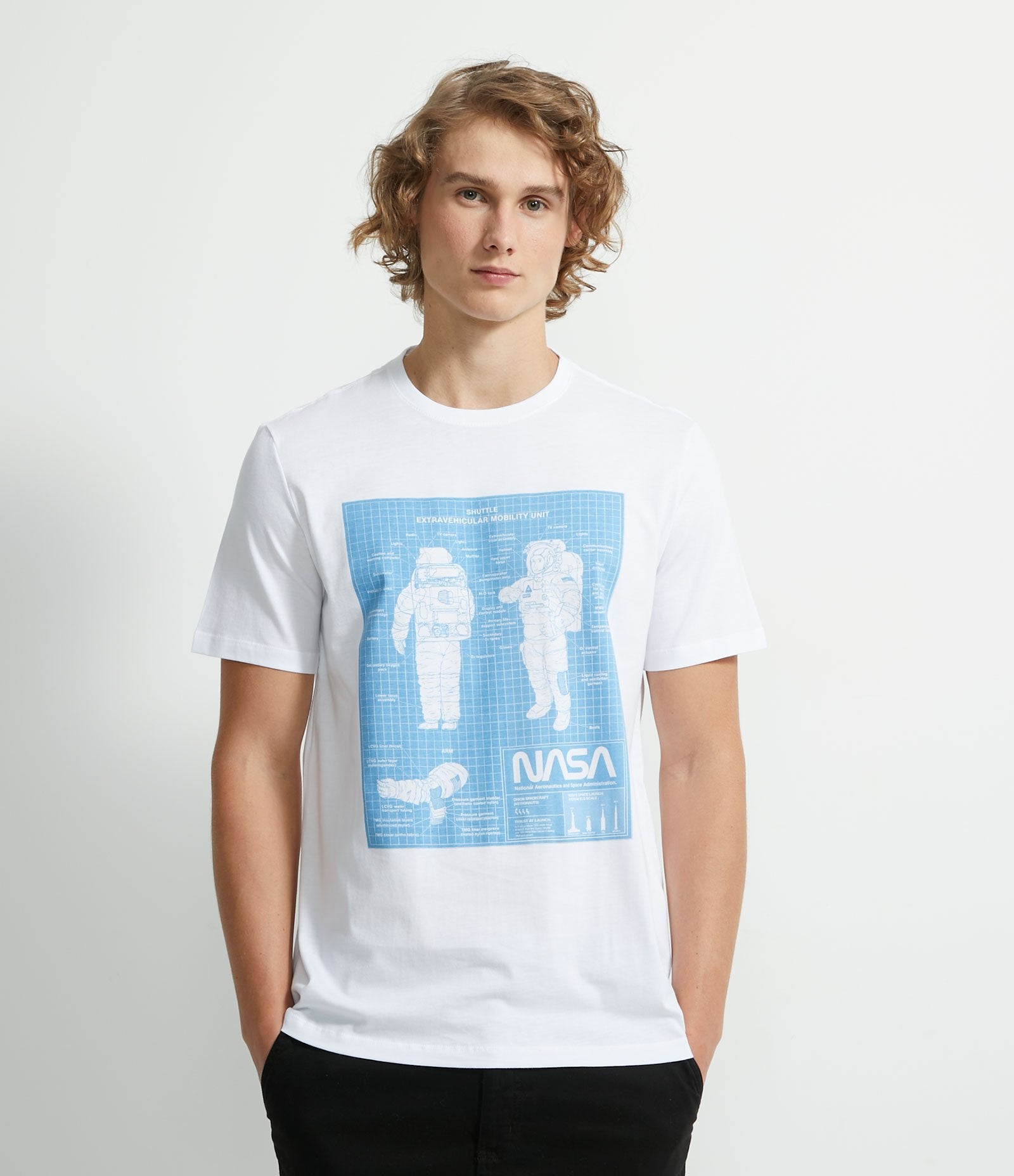 Maglietta a maniche corte in cotone con stampa astronauta NASA - Bianco