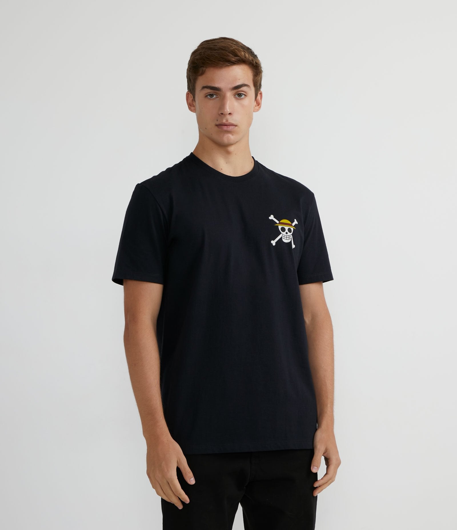 Maglietta a maniche corte a mezza rete con stampa One Piece - Nero