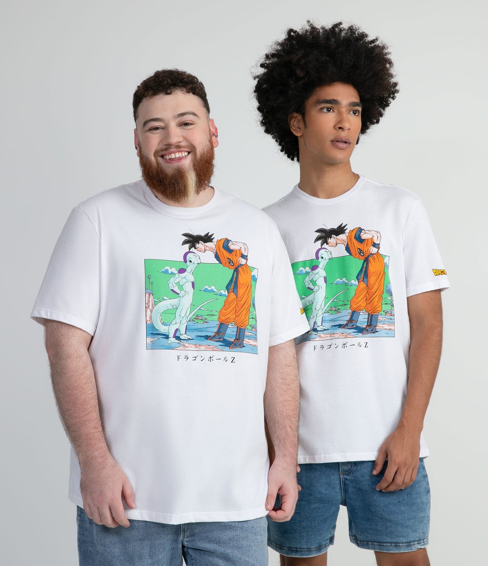 Maglietta a maniche corte con stampa di Goku e Freezer - Bianco