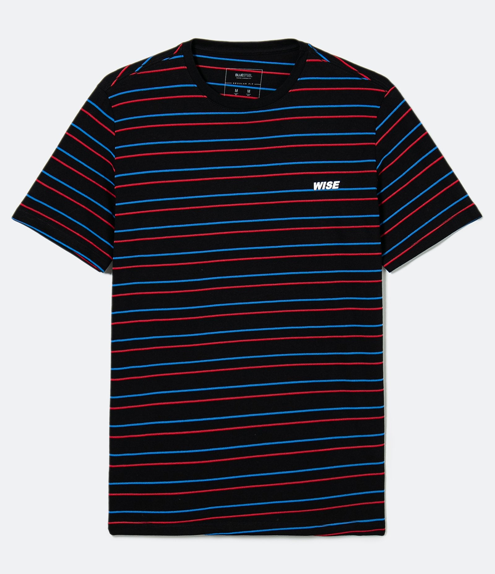 Maglietta a maniche corte a righe con etichetta stampata a lettere nere