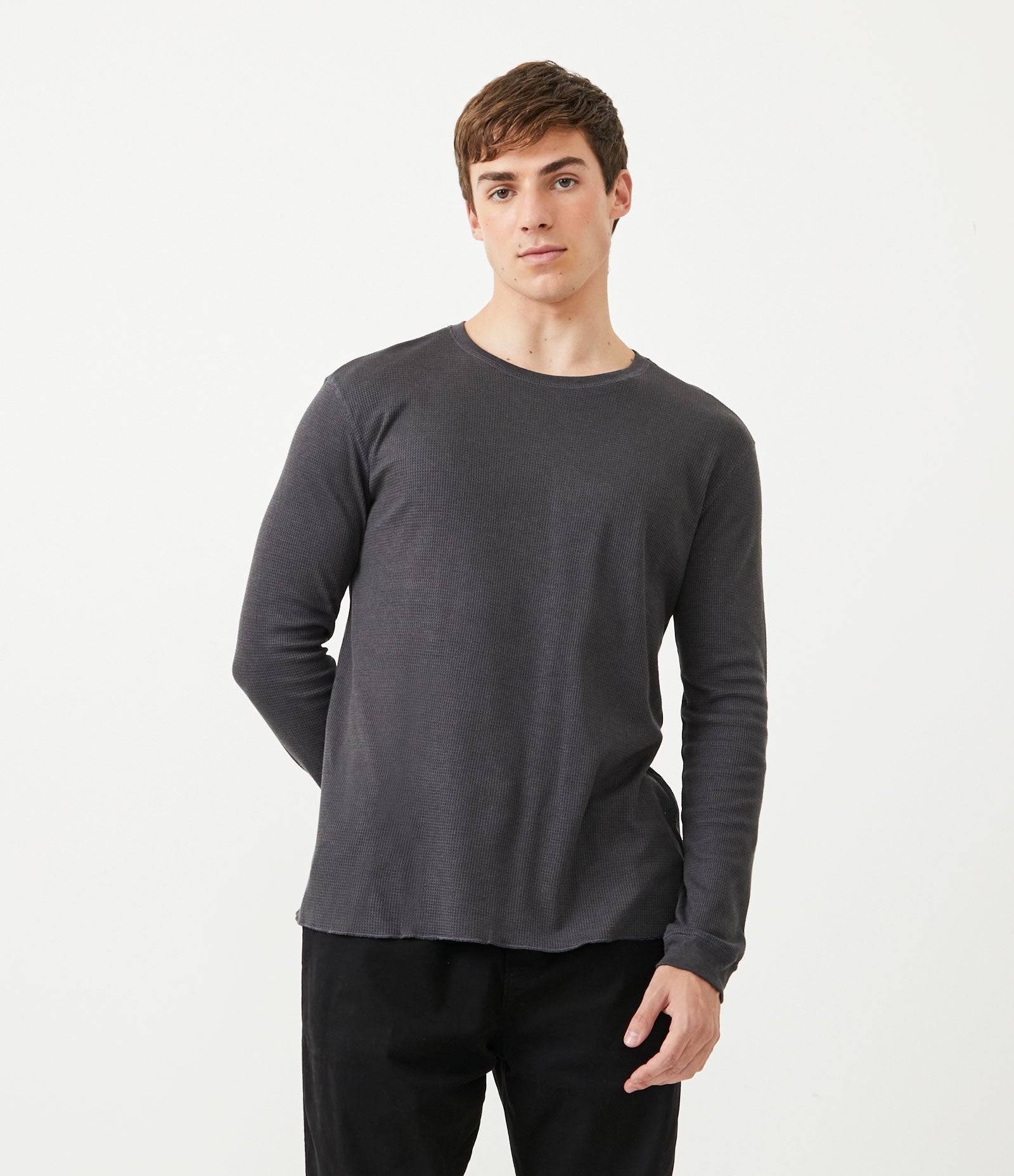 Maglietta grigia a maniche lunghe in maglia Waffle
