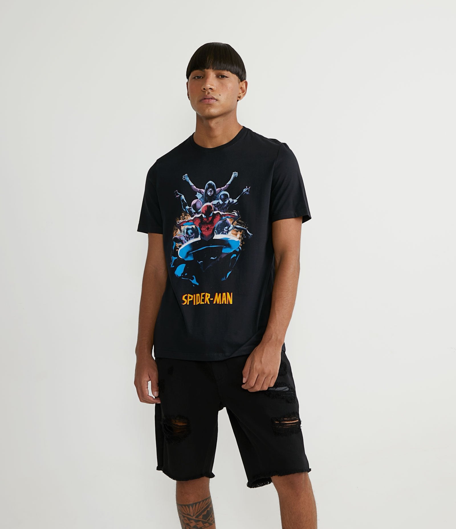 Maglietta nera dal taglio regolare con stampa Spider-Verse