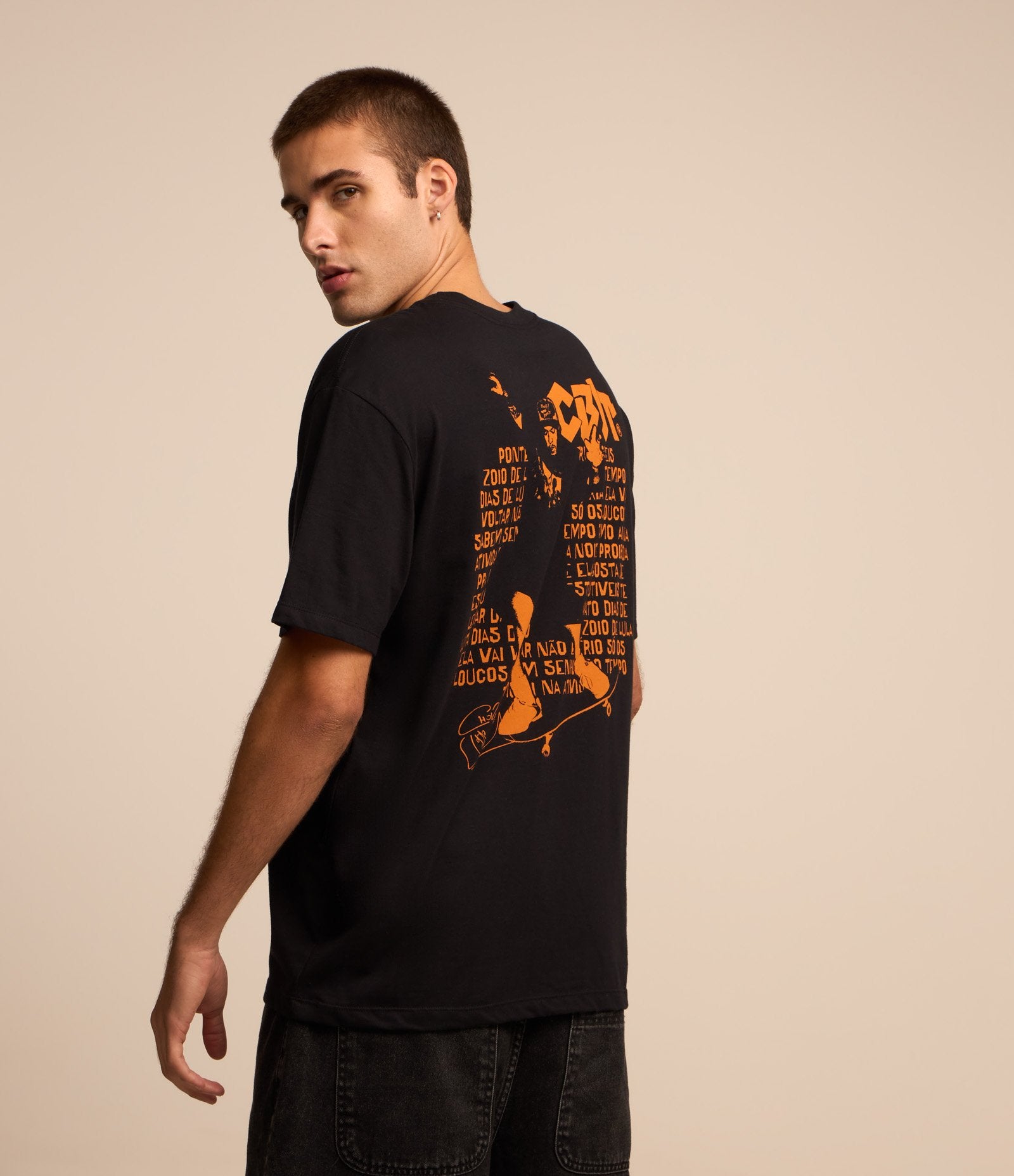 Maglietta in cotone dal taglio rilassato con stampa di Charlie Brown Jr. in nero