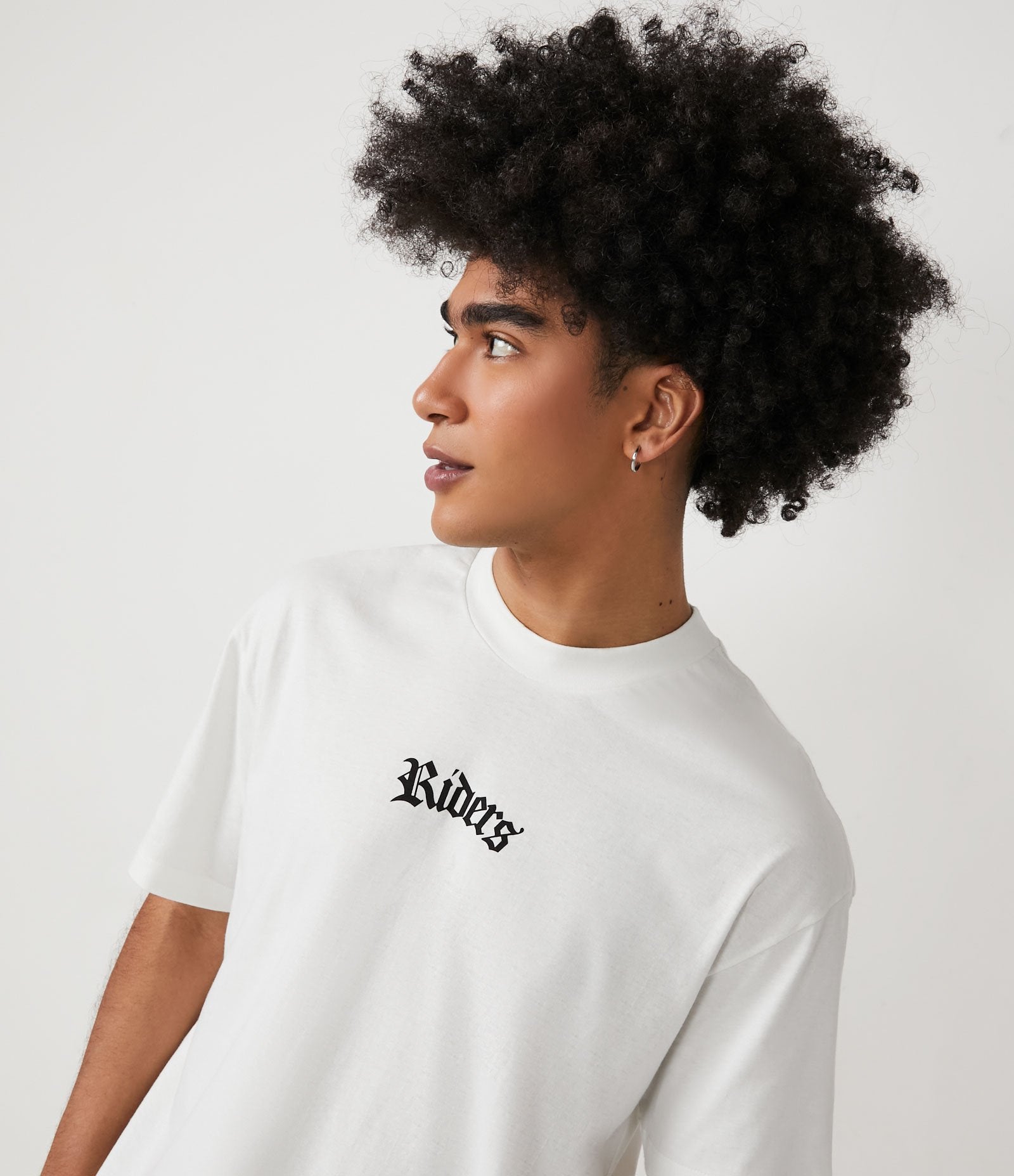 Maglietta dal taglio rilassato di colore bianco con stampa Riders 03