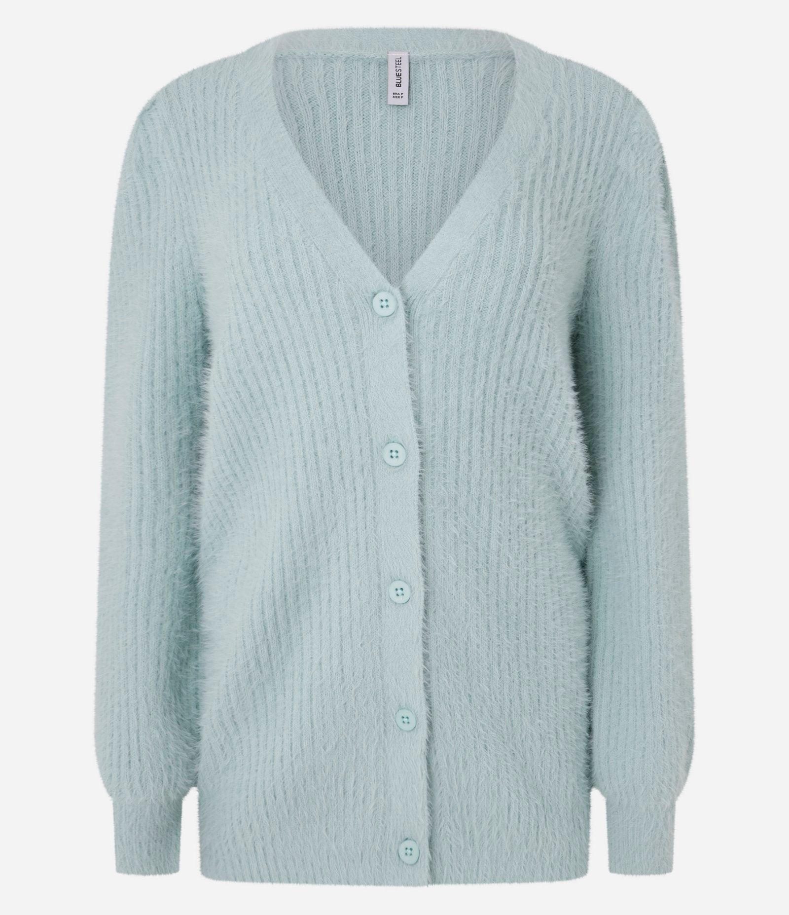 Cardigan a maglia lunga con trama vaporosa e polsini a coste in verde