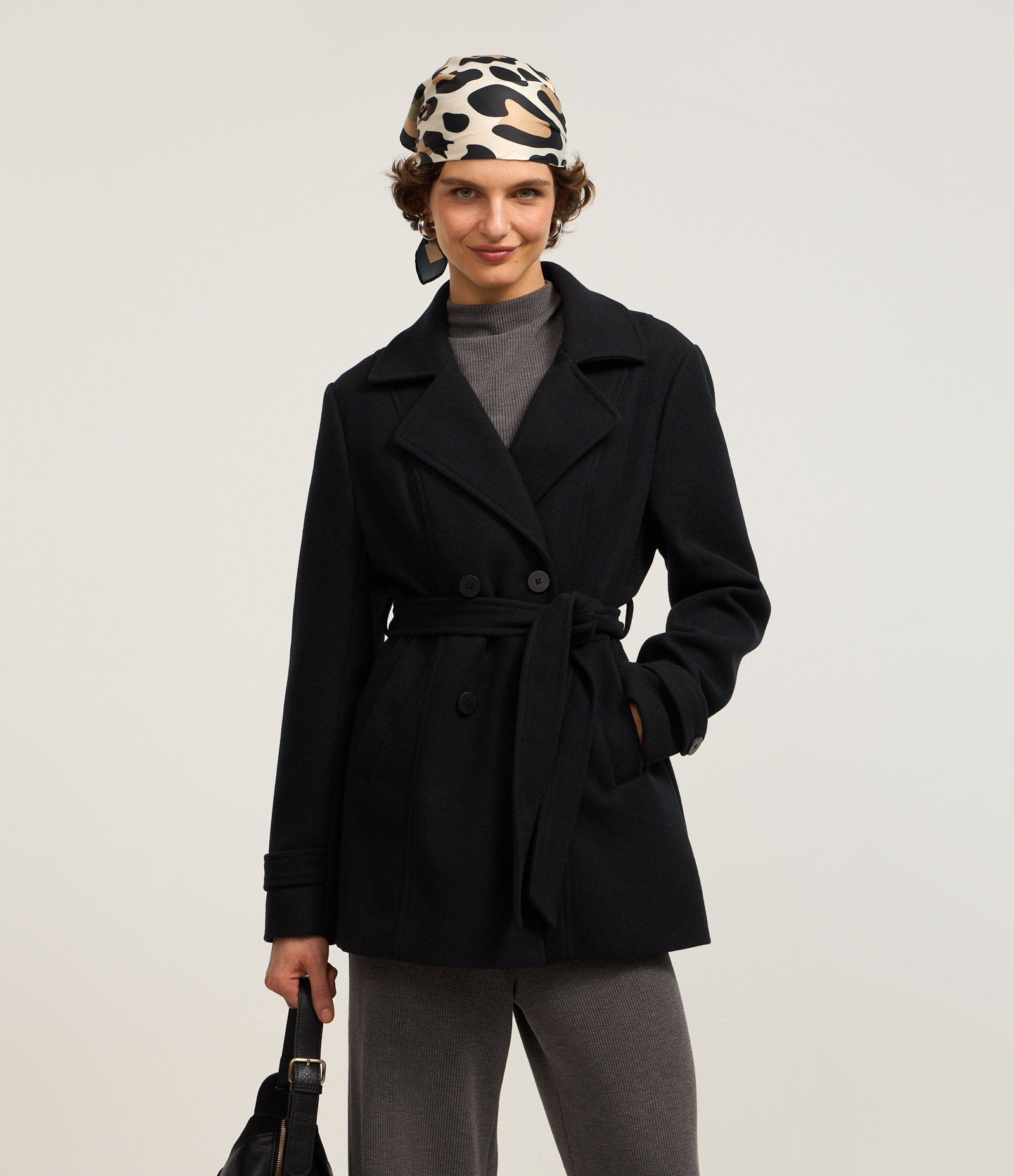 Cappotto lungo in Polivelour nero con tasche