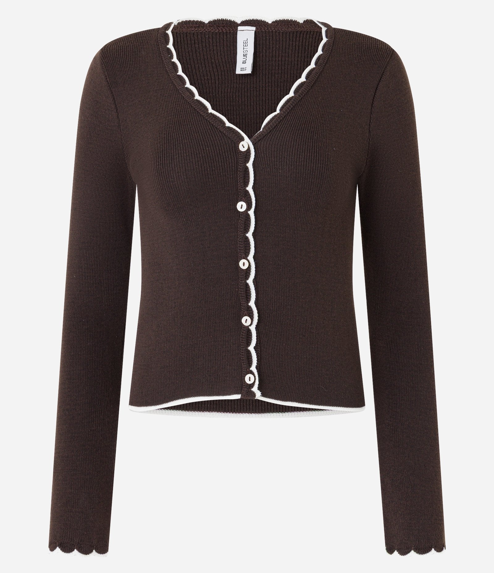 Giacca in maglia leggera con bordi ondulati a contrasto marrone