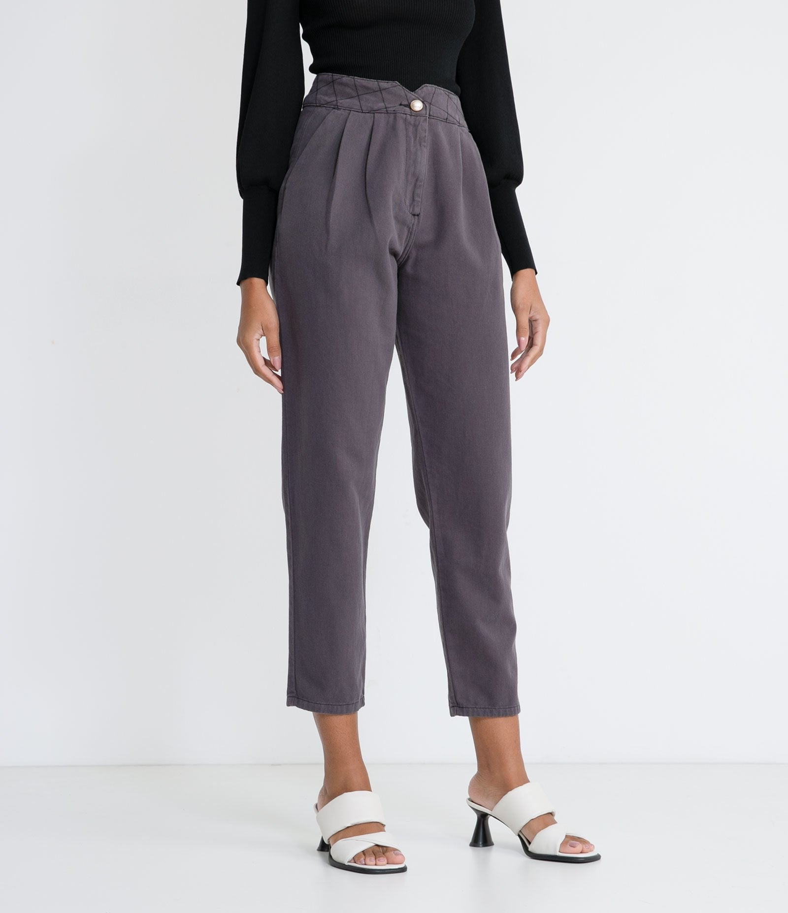 Pantaloni in twill con cintura dettagliata e bottone con perla nera