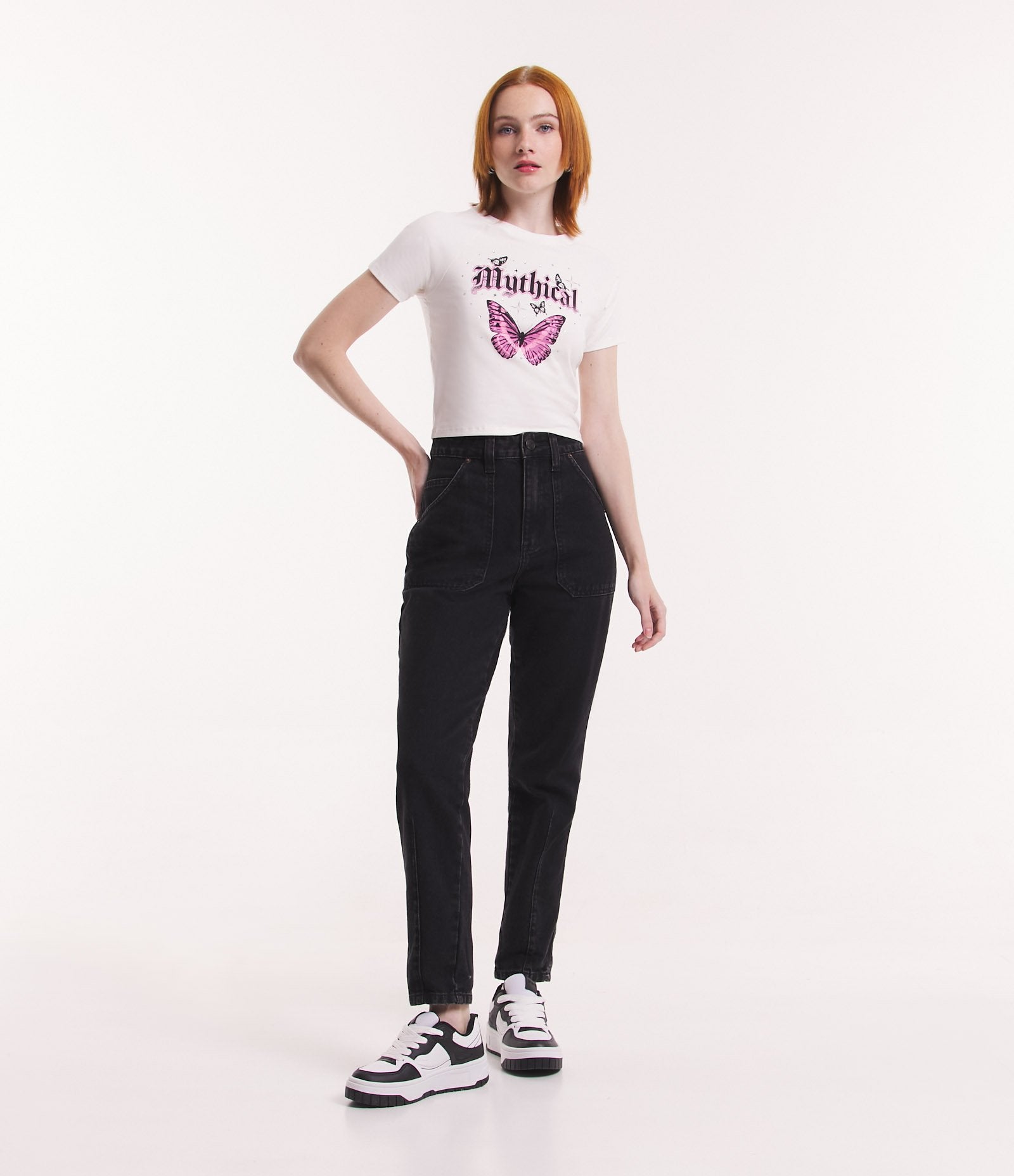 Jeans mamma neri con tasche grandi e orlo regolabile