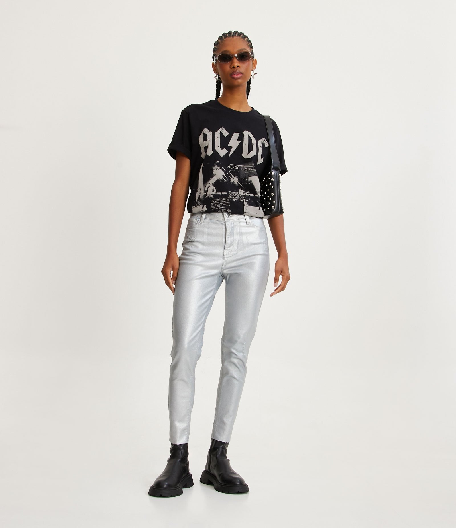 Jeans skinny con texture in resina e dettaglio in lamina d'argento di Renner - Scopri il comfort, la qualità e lo stile senza pari di ogni capo.
