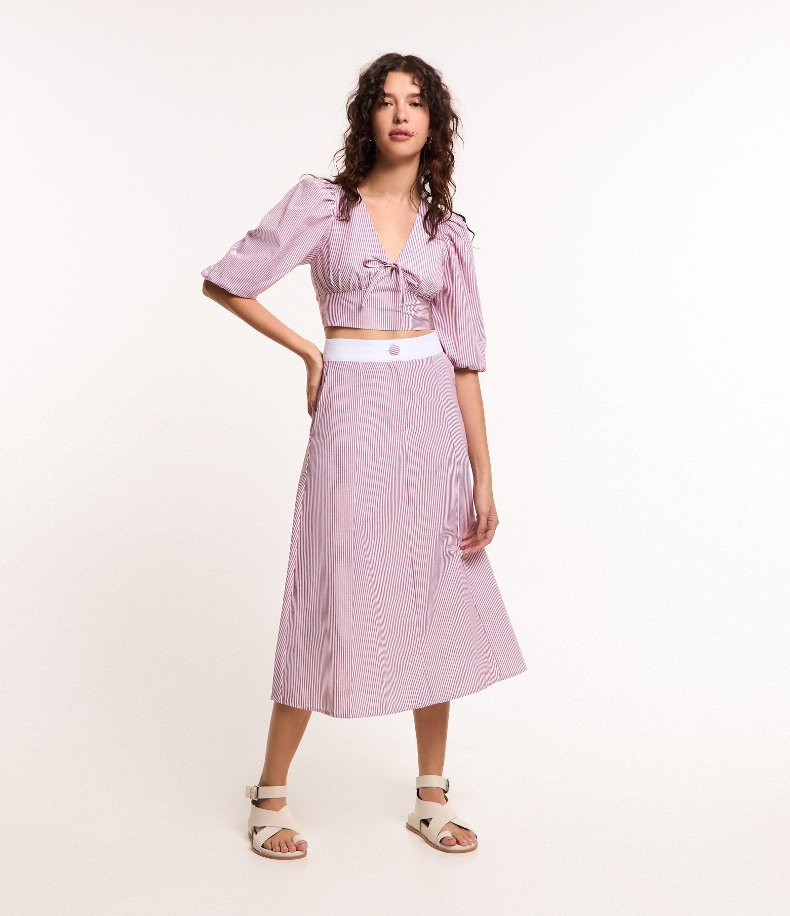 Gonna midi in tricolore tinto in filo rosso