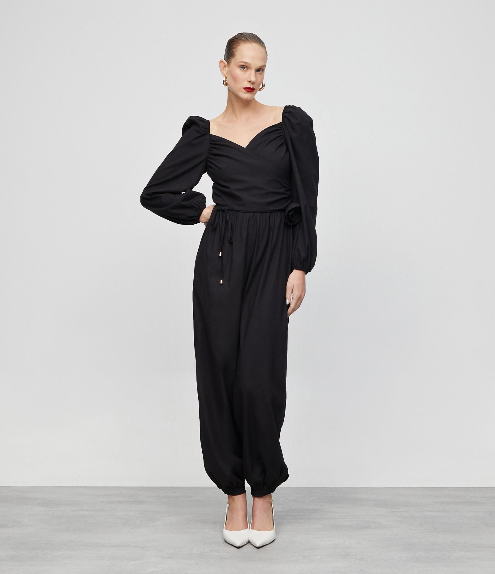 Tuta tricolore nera con dettaglio cravatta e maniche a sbuffo di Renner - Prova il mix perfetto di comfort, qualità e stile in ogni capo.