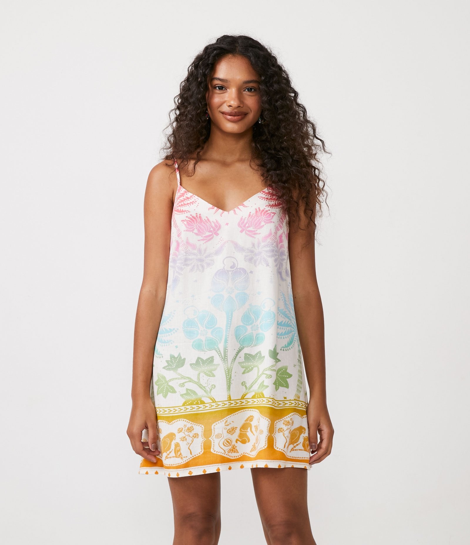 Abito corto in lino con stampa floreale e a foglie in beige di Renner - Prova il comfort, la qualità e lo stile in ogni capo.