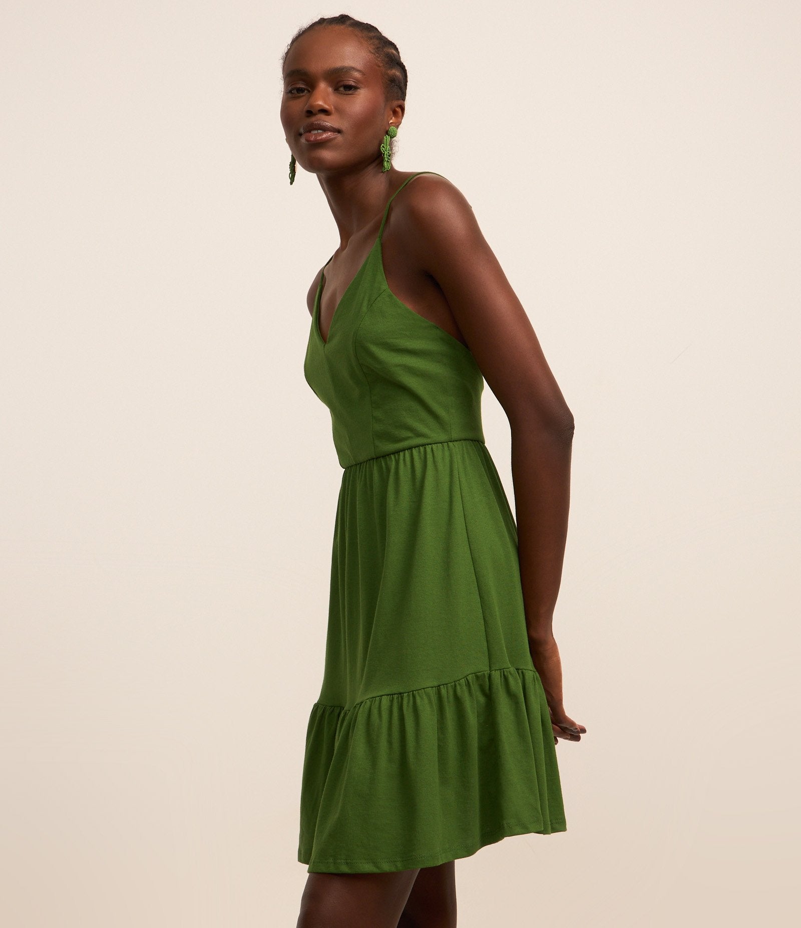 Abito corto in cotone verde con taglio e spalline sottili di Renner - Prova il comfort, la qualità e lo stile in ogni capo.